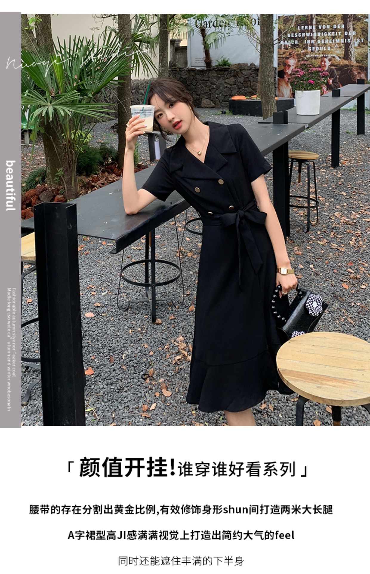 職業西裝連衣裙女2023新款夏季顯售氣質大碼高端面試裙子黑色長裙