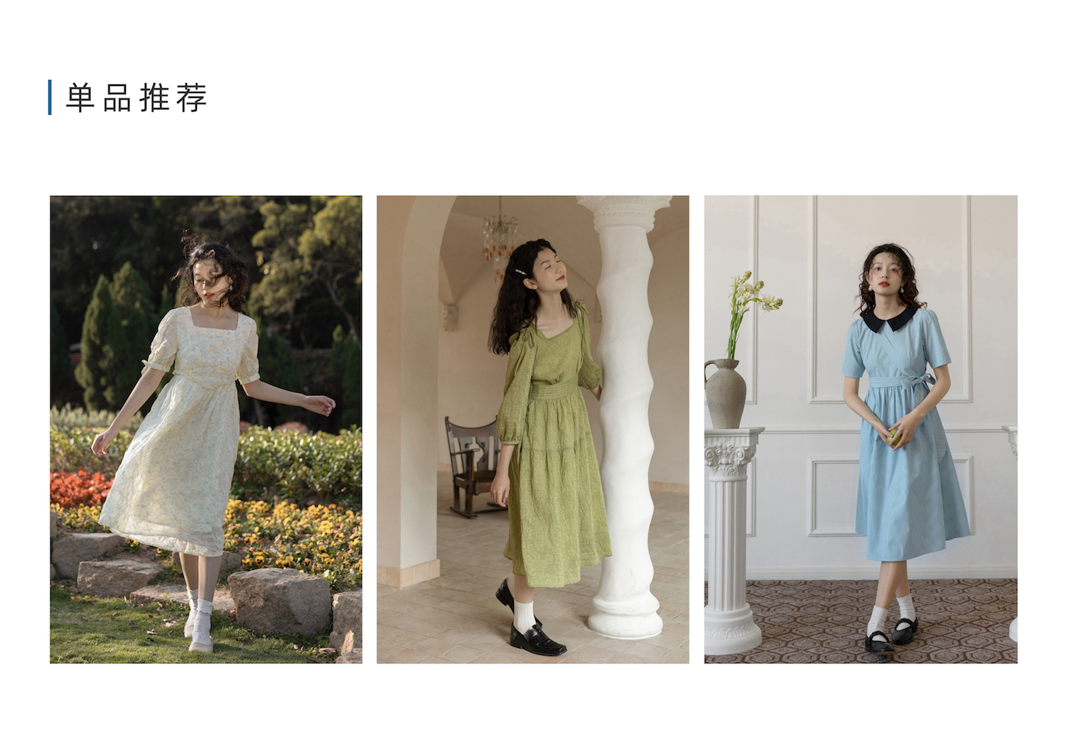 LLANO襯衫領連衣裙牛奶白復古優雅氣質度假腰可調節a字中長裙女夏
