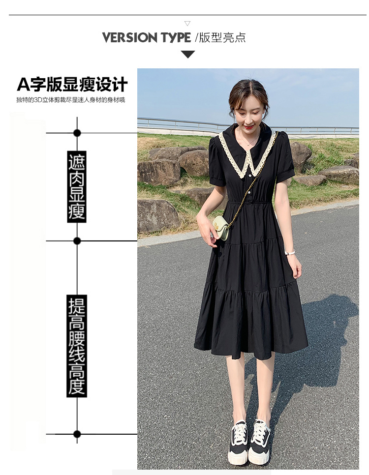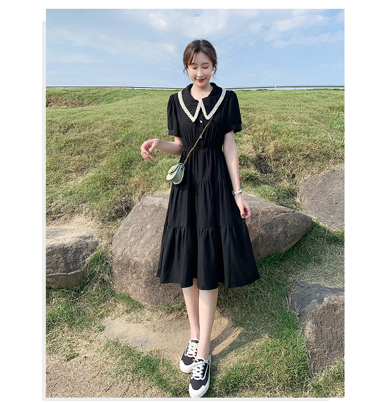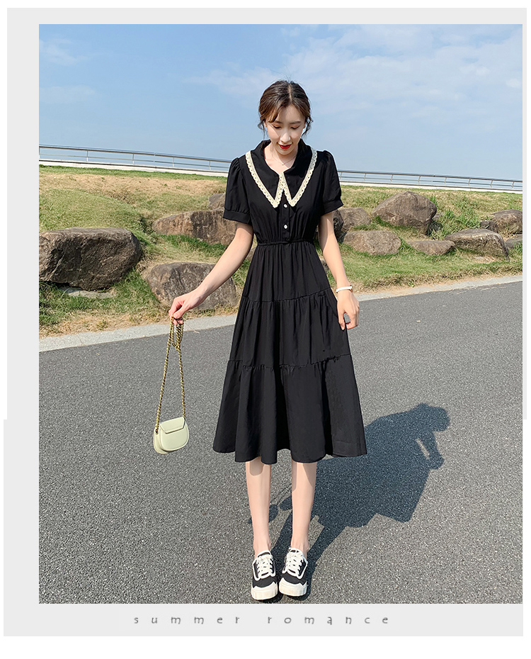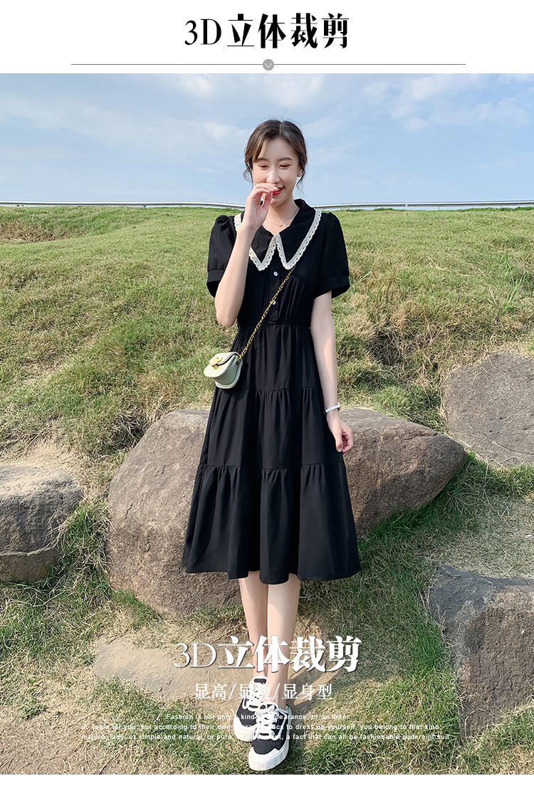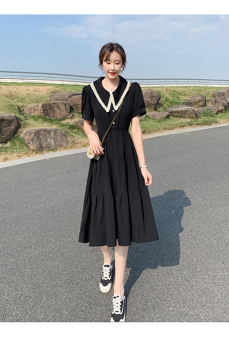 小個子小黑裙黑色雪紡連衣裙女夏2023新款顯瘦氣質娃娃領a字裙子