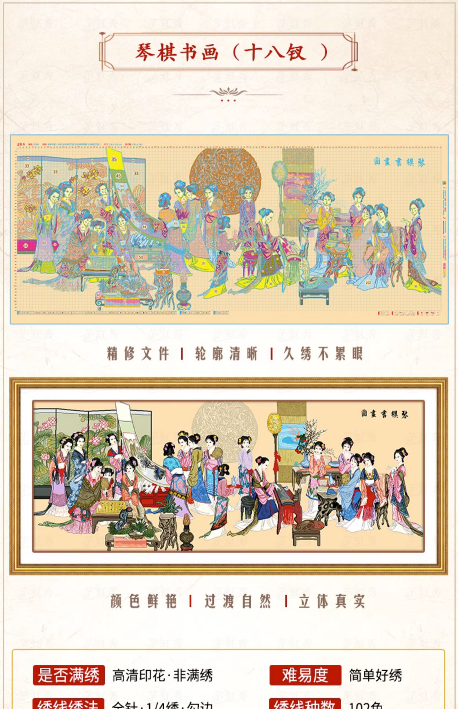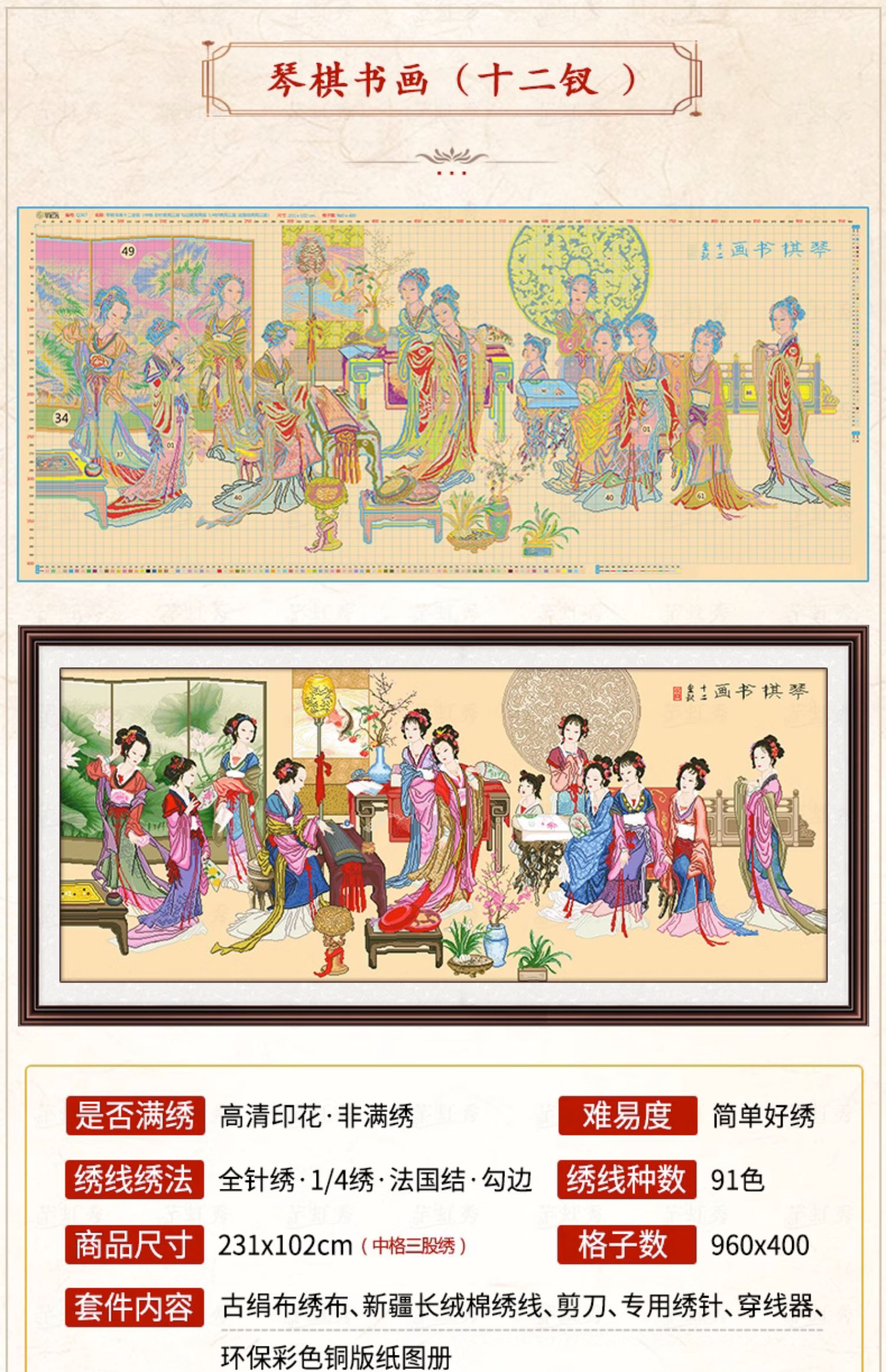 琴棋書畫十字繡2023新款線繡人物古典名畫十二金釵美女手工自己繡