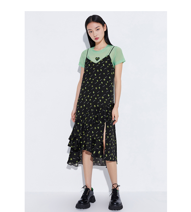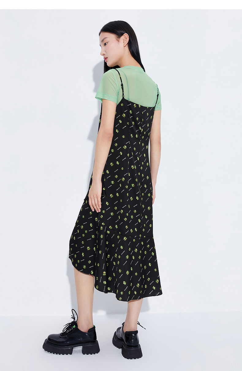 卡拉佛黑色吊帶連衣裙女夏季新款收腰顯瘦設計感兩件套裙子