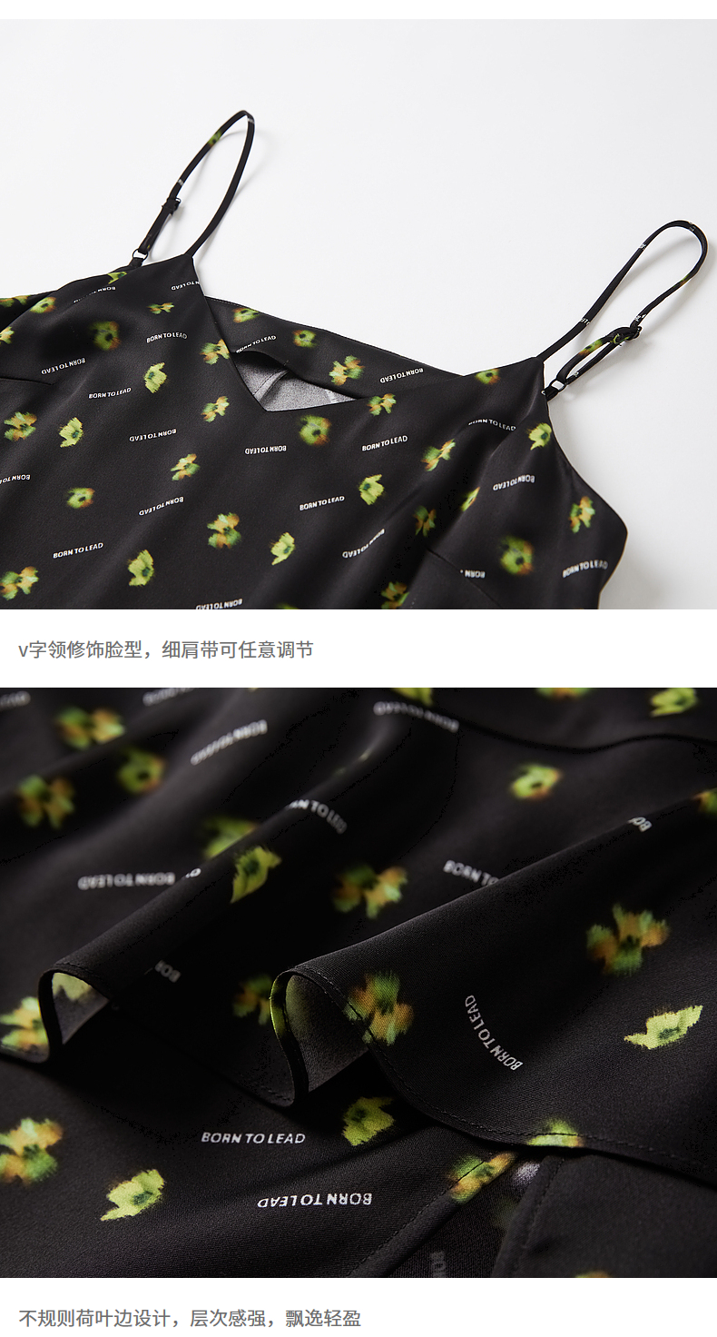 COLOVE卡拉佛碎花吊帶連衣裙女2023春秋新款時尚洋氣高級氣質裙子
