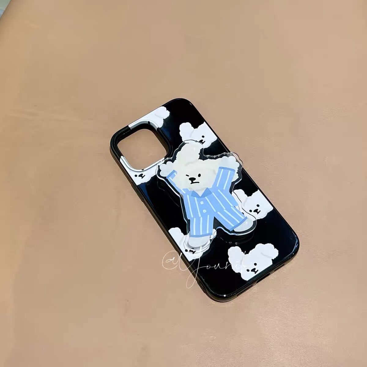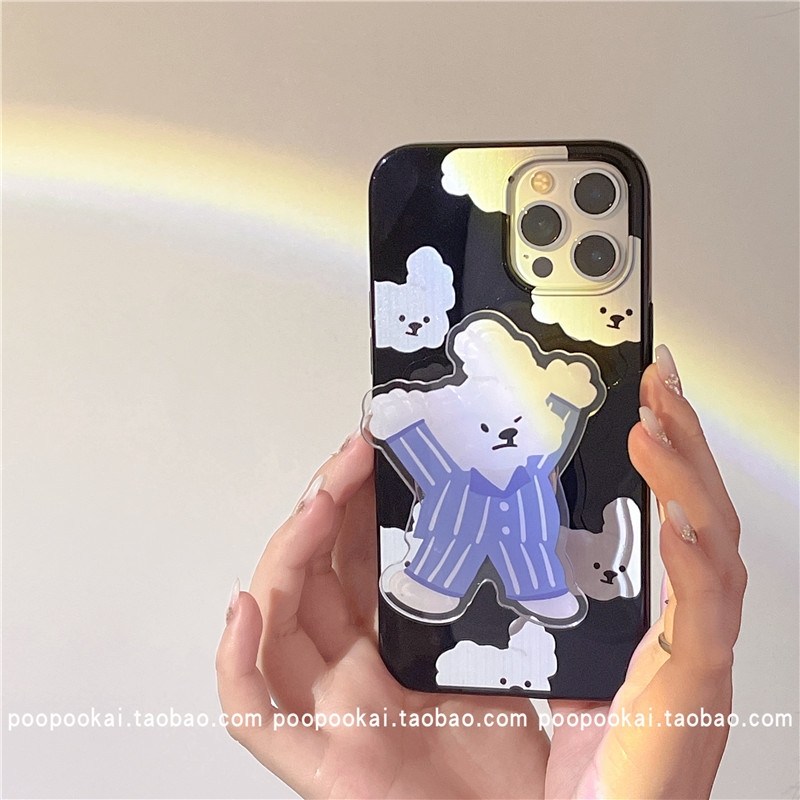 ins可愛波點小熊支架適用iphone15Promax蘋果13手機殼14Pro女12軟
