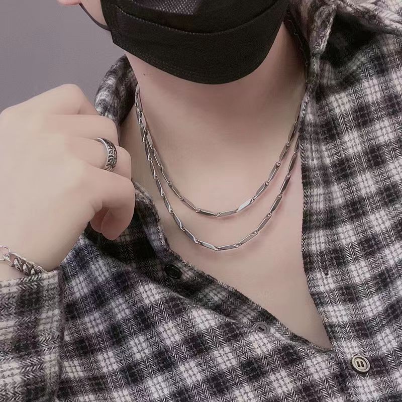 銀色菱形竹葉基礎款男潮男鈦鋼鏈子