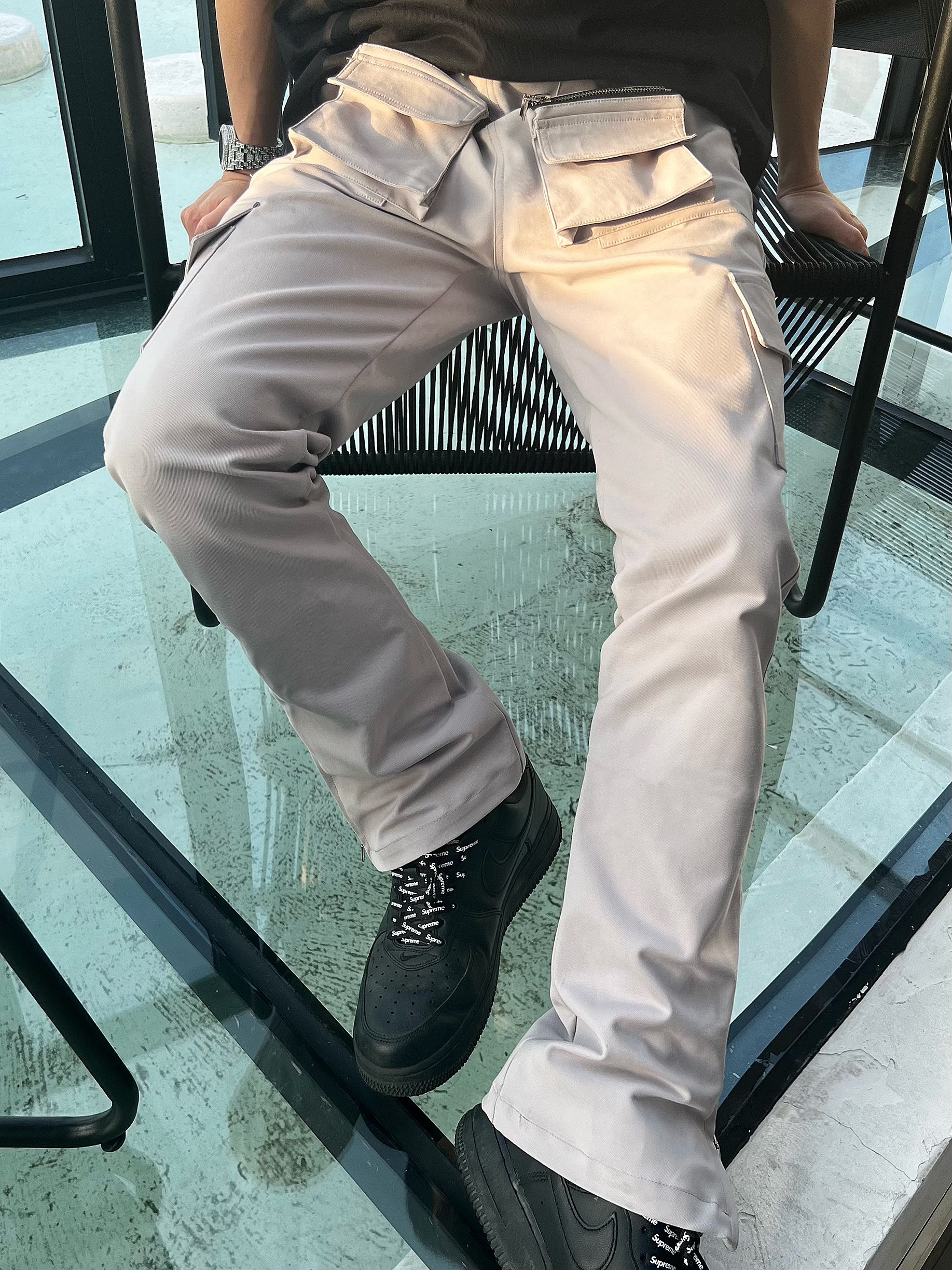 YUANQ22SS美式高街vibe風多功能口袋拉鏈微喇叭長褲
