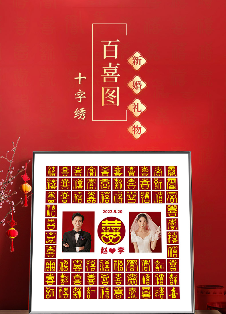 百喜圖 十字繡2022新款結婚喜字新婚手工diy婚禮系列禮物喜圖2023