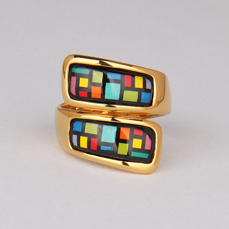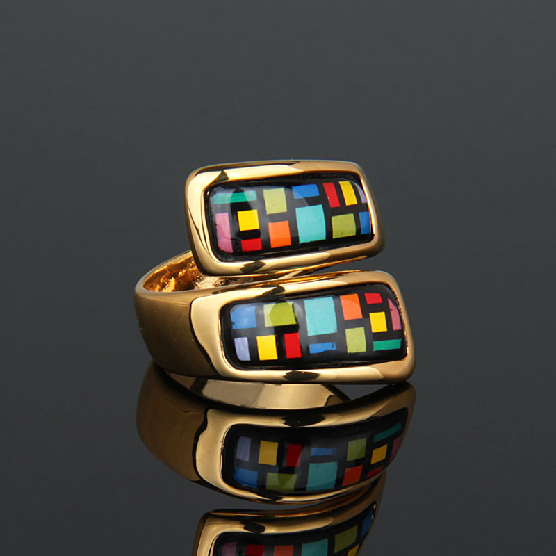 紀念蒙德里安彩格幾何時尚個性開口中性琺瑯戒指女小眾設計高級感