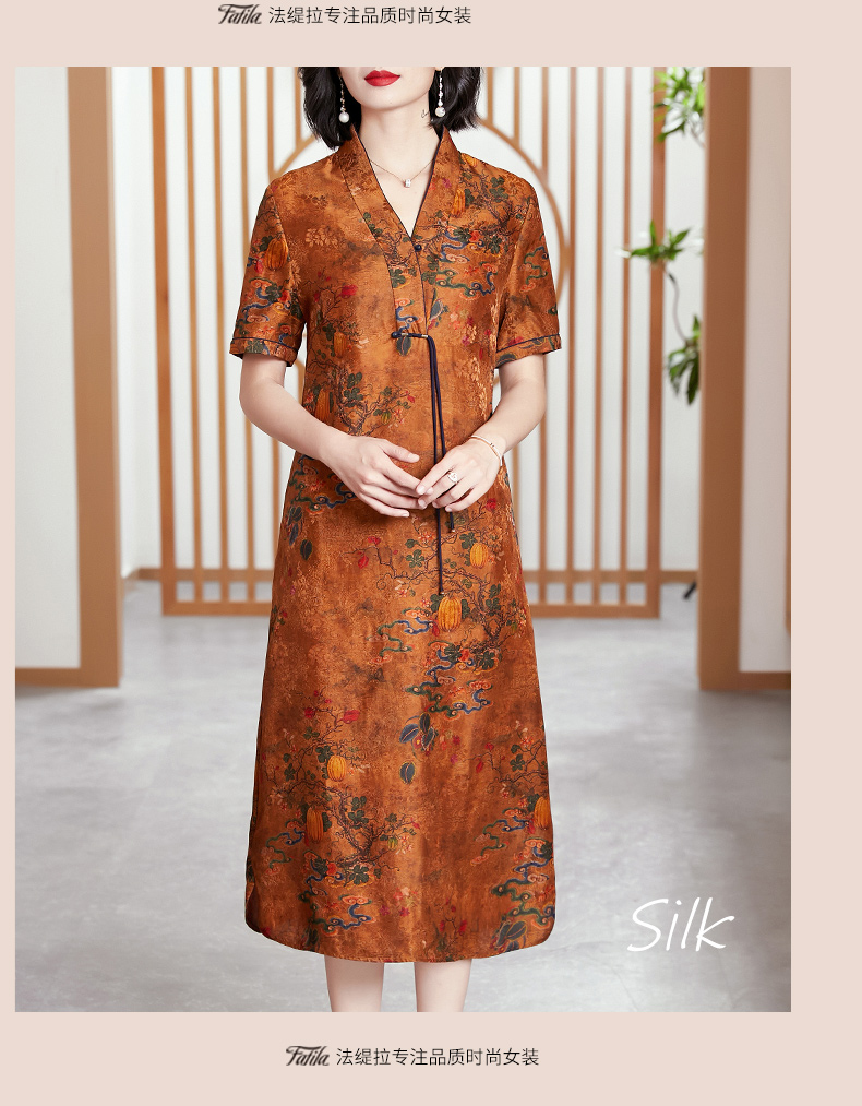 杭州香云紗重磅真絲連衣裙夏新款大牌高端桑蠶絲直筒裙子中年媽媽