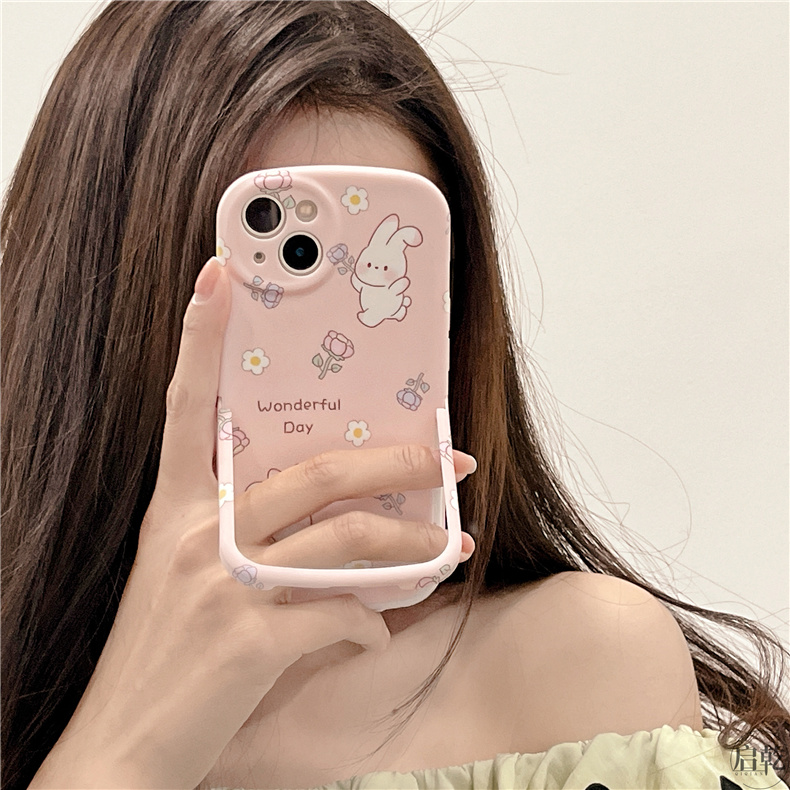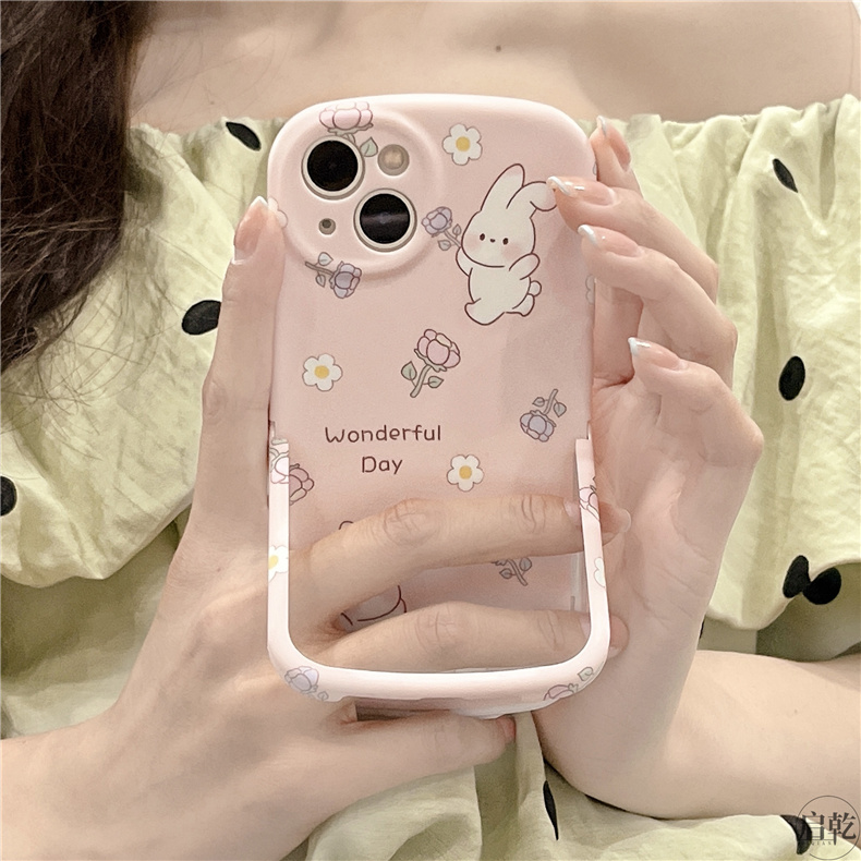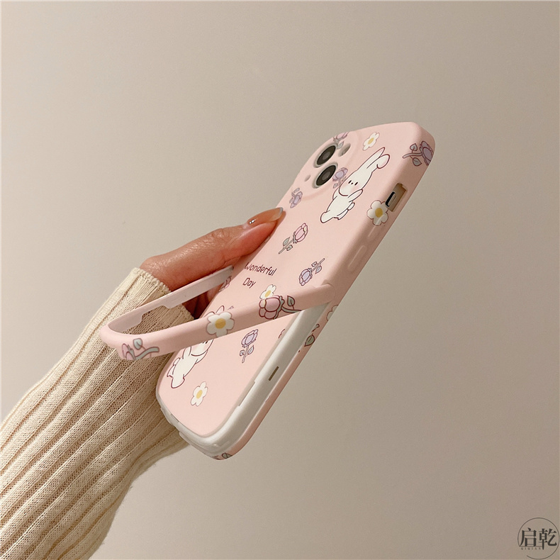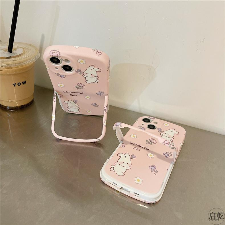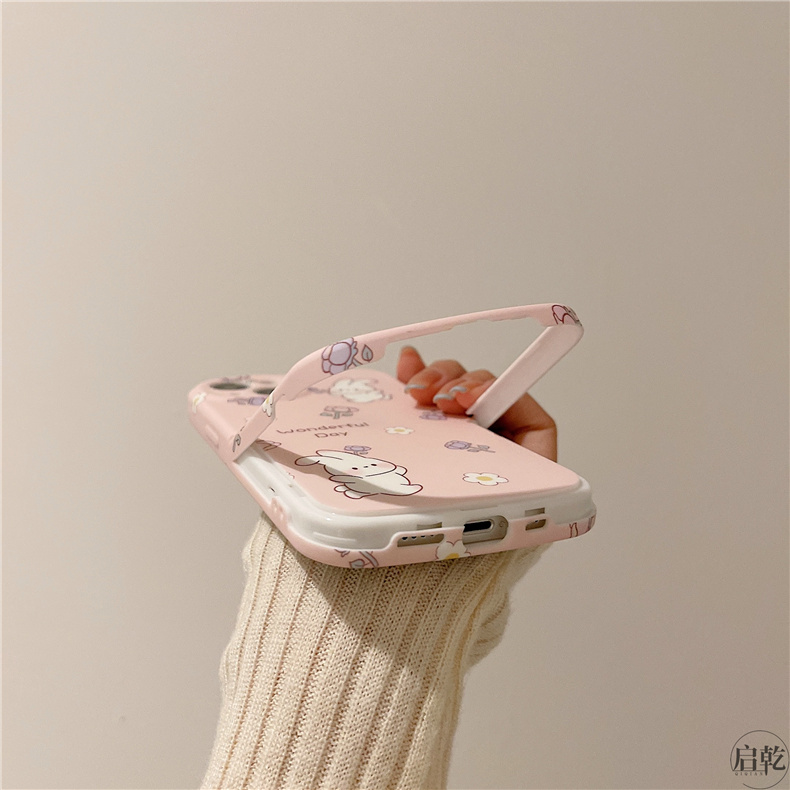 粉色兔子支架殼iphone13手機殼適用蘋果13promax小清新12/11小眾可愛卡通少女心磨砂軟殼液態硅膠14pro/plus