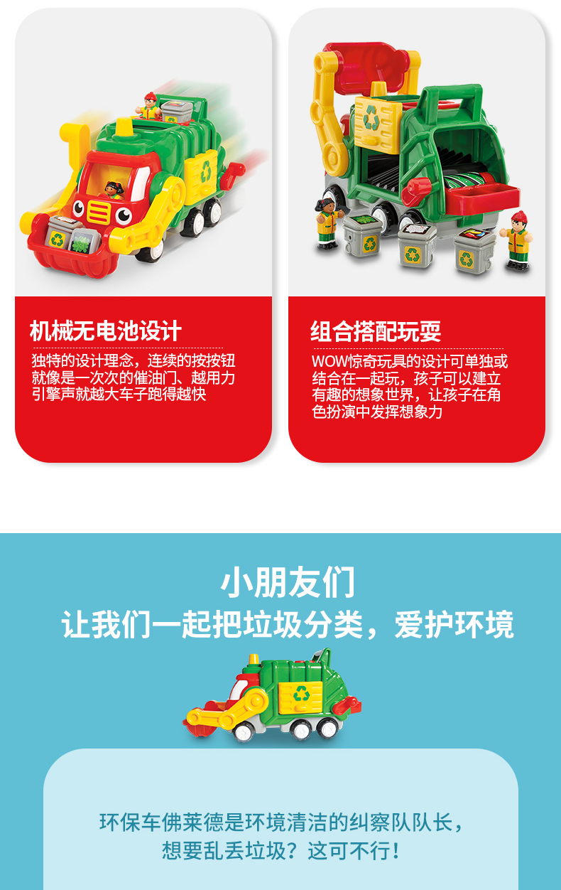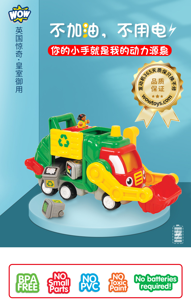 英國WOW驚奇嬰幼兒童情景回力玩具車城市環衛垃圾車1-5歲摔不壞