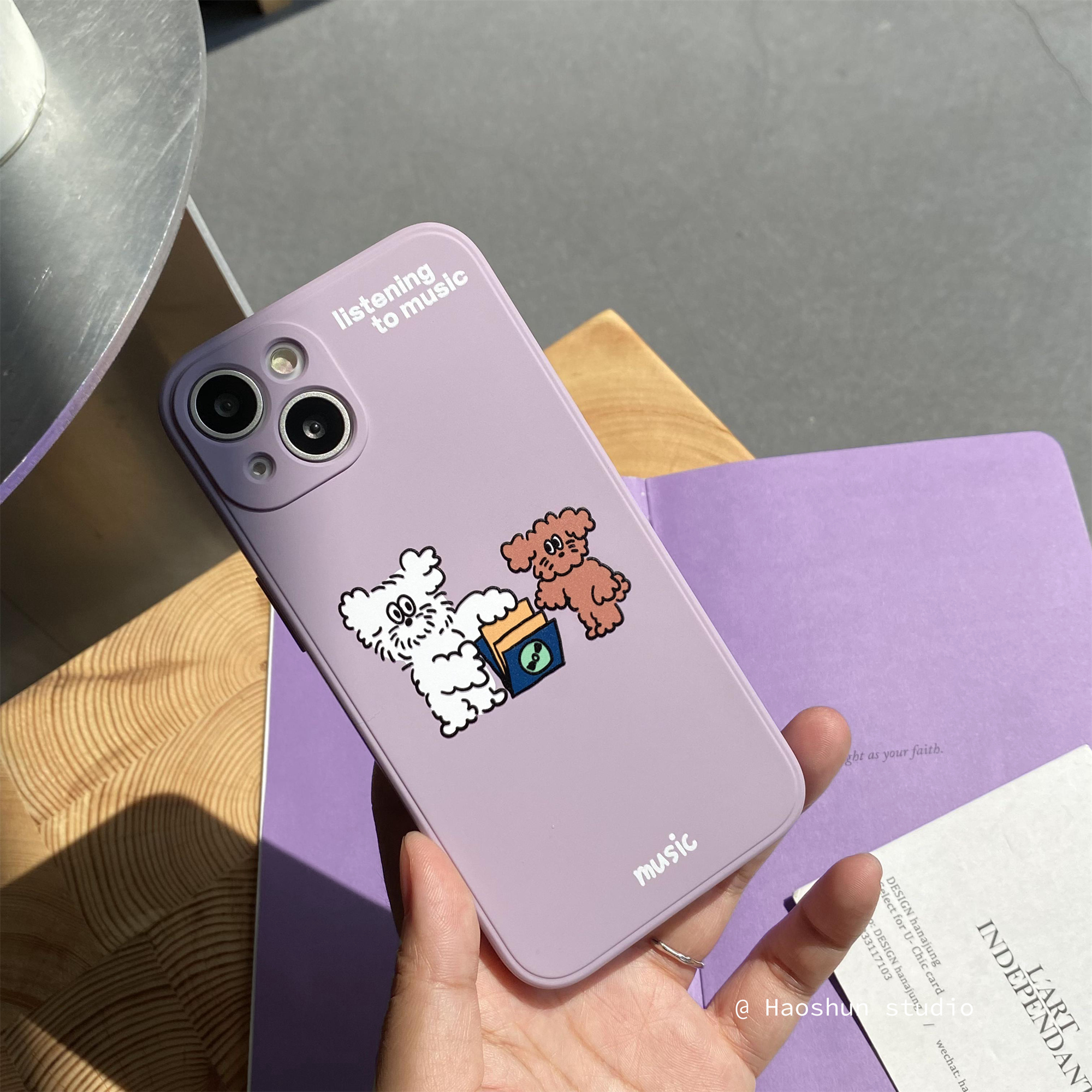 奔向姓胡原創紫色修勾頭像設計適用蘋果15PROMAX手機殼菲林iphone14plus13趣味卡通萌系12可愛治愈小狗亮面硬