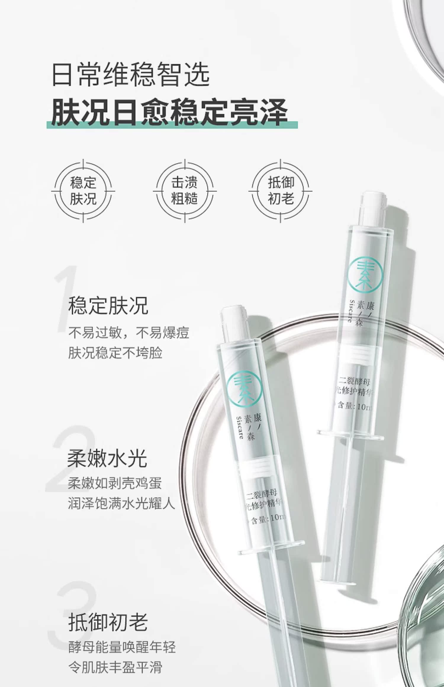 素森康二裂酵母水光精華液舒緩修護肌膚補水保濕熬夜提亮膚色男女