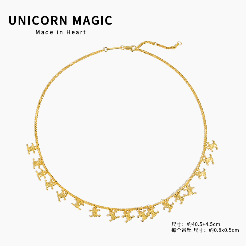 凱旋門彩色糖果寶石流蘇輕奢鎖骨鏈