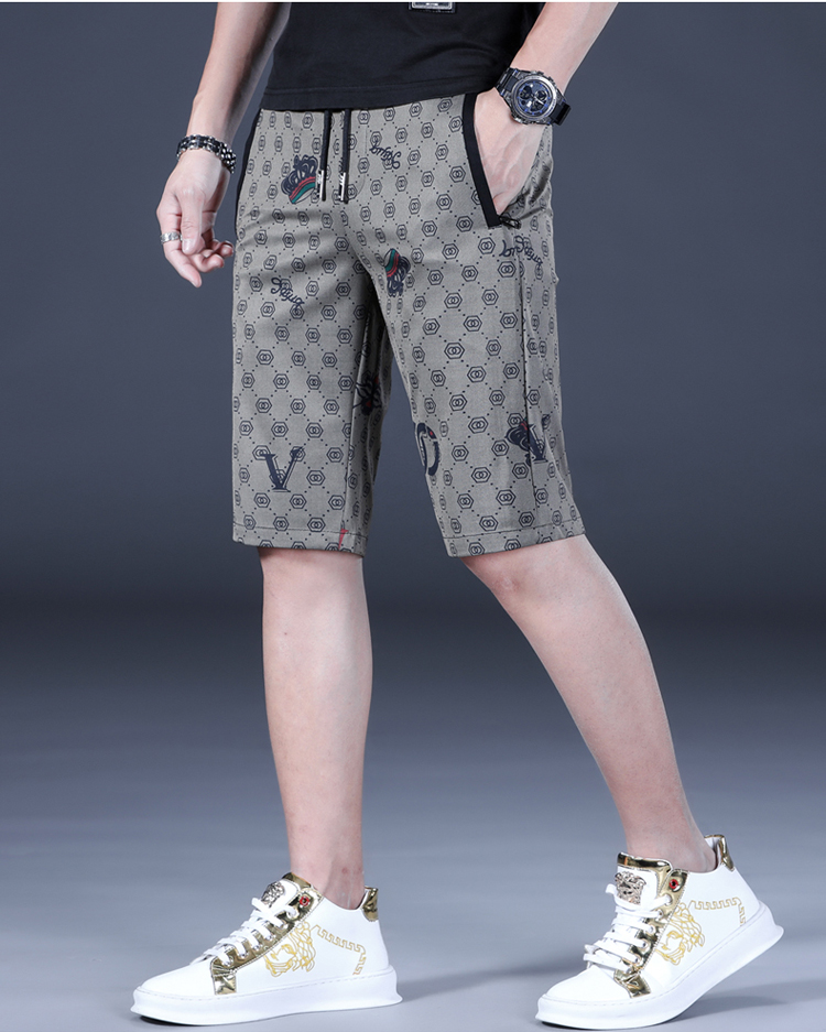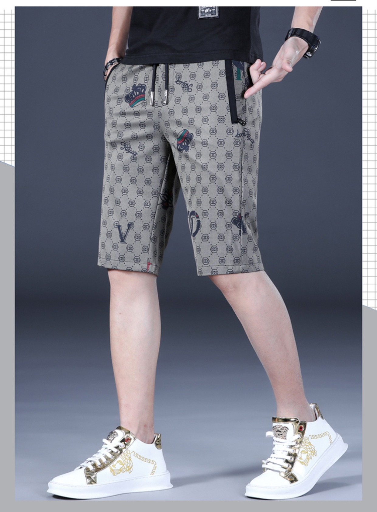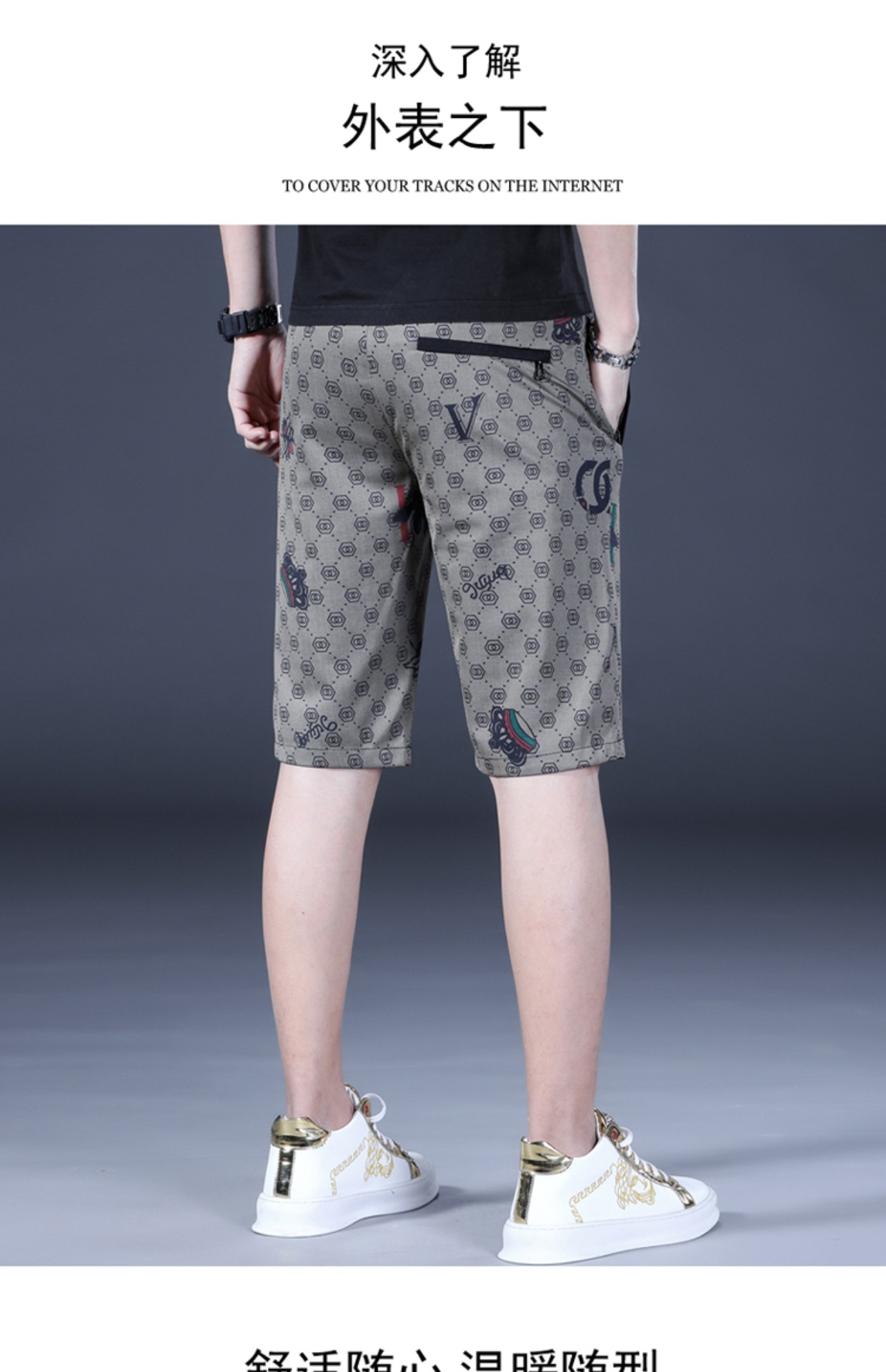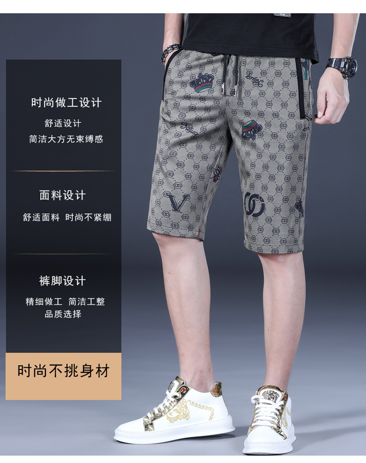 夏季薄款男士潮牌印花短褲男新款五分褲中褲免燙休閑褲潮流沙灘褲