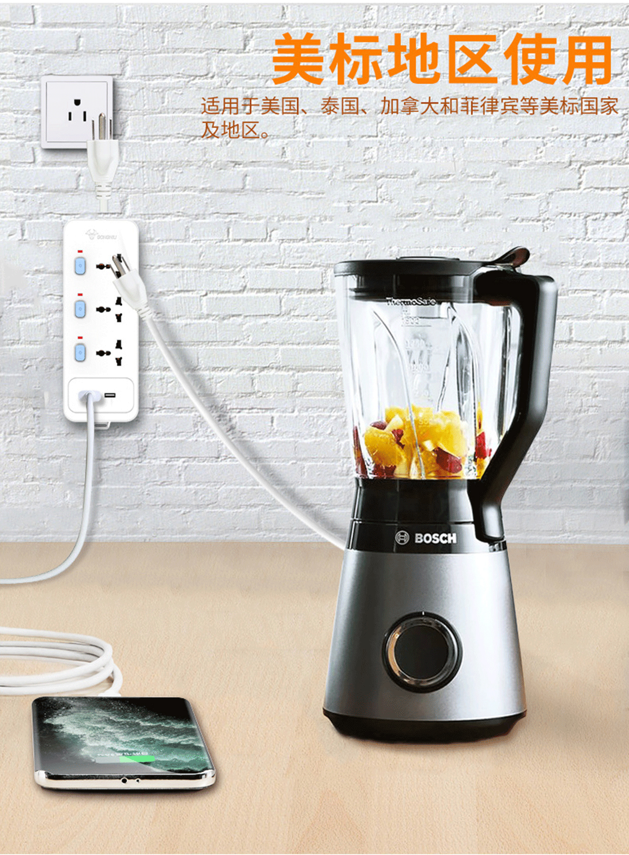 大功率美標插座 1.5平方粗線插排插線板美國加拿大美規式轉換插頭