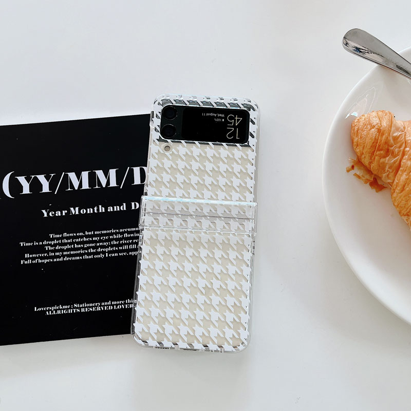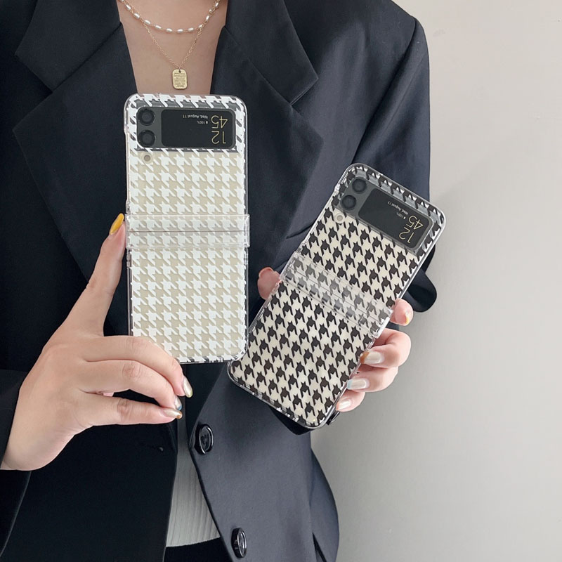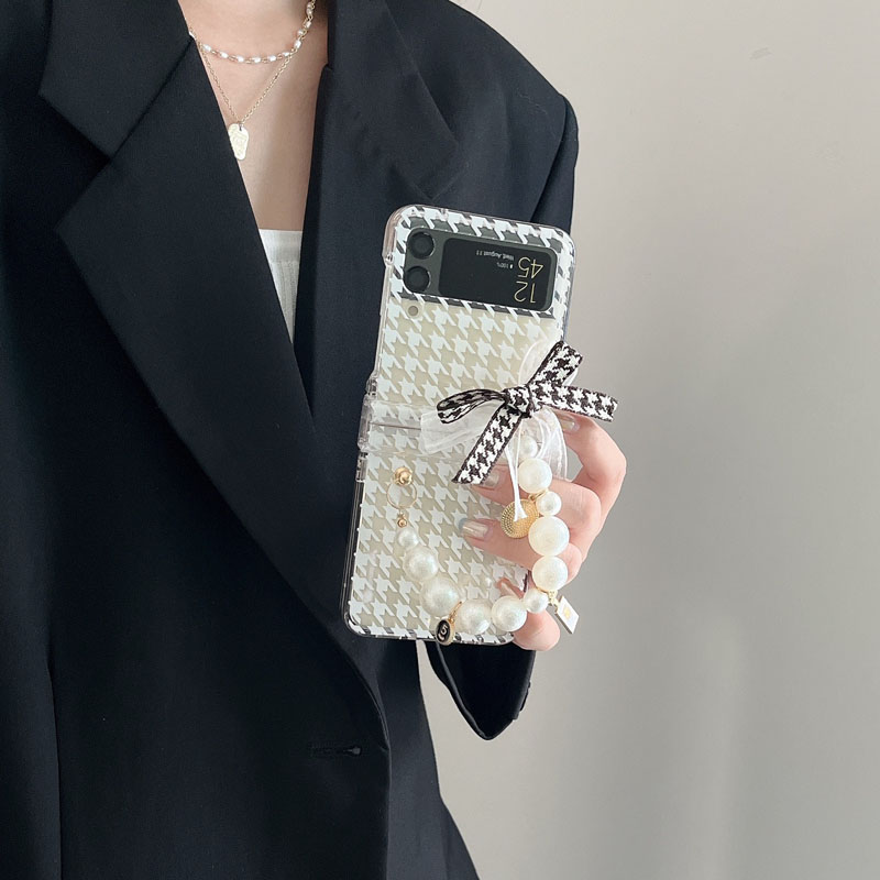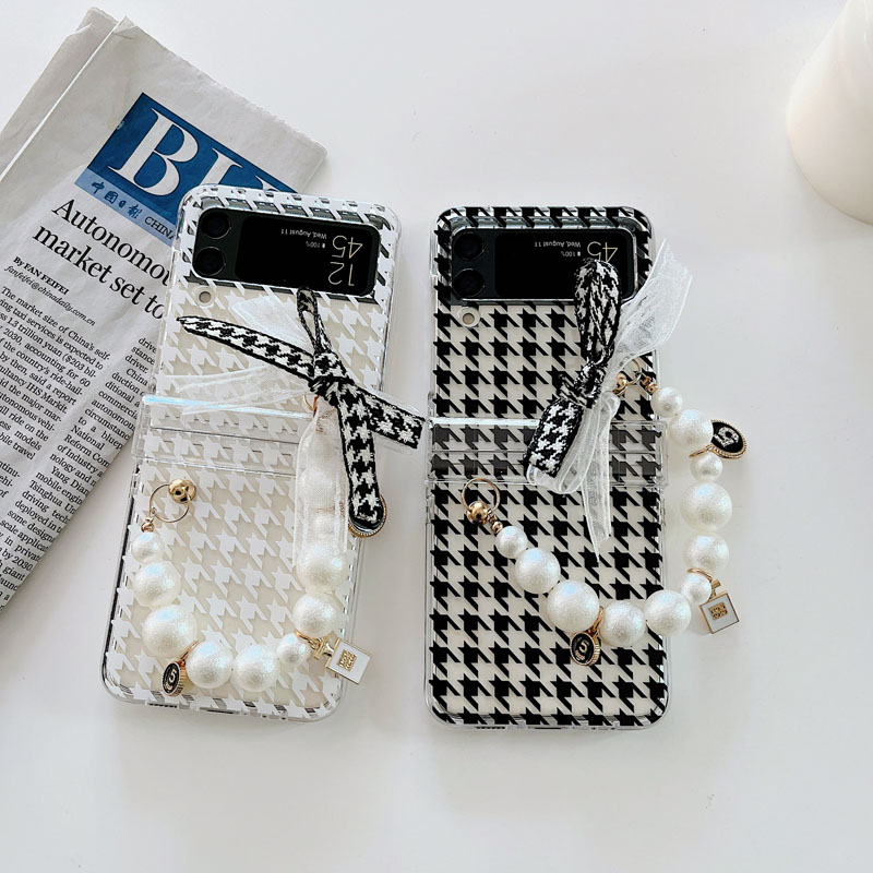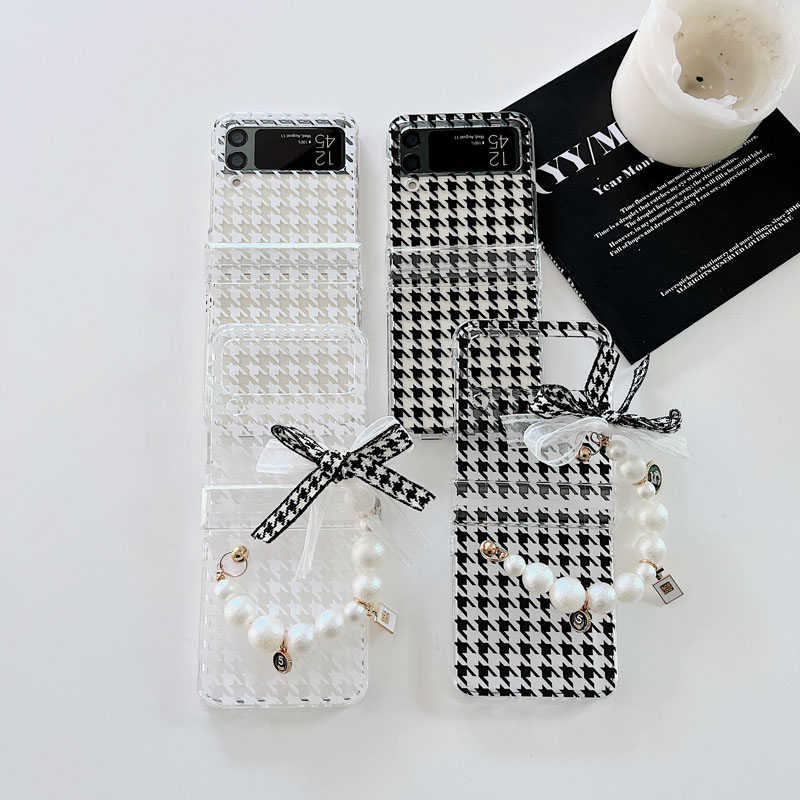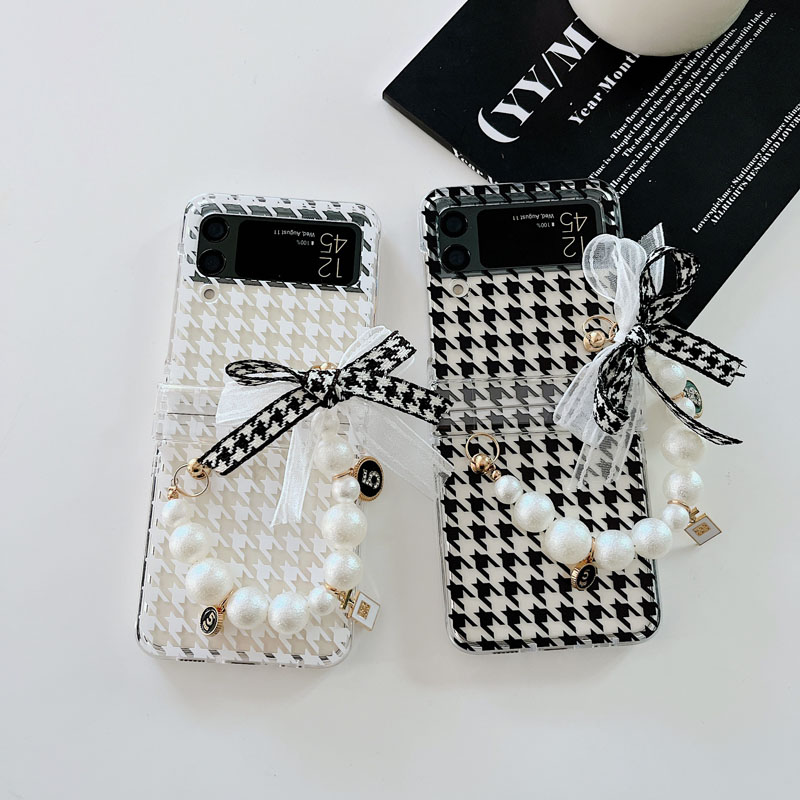 適用三星zflip5手機殼可愛千鳥格紋小清新INS蝴蝶結側邊全包硬保護套款zflip 3殼折疊屏手提手鏈格子透flip4