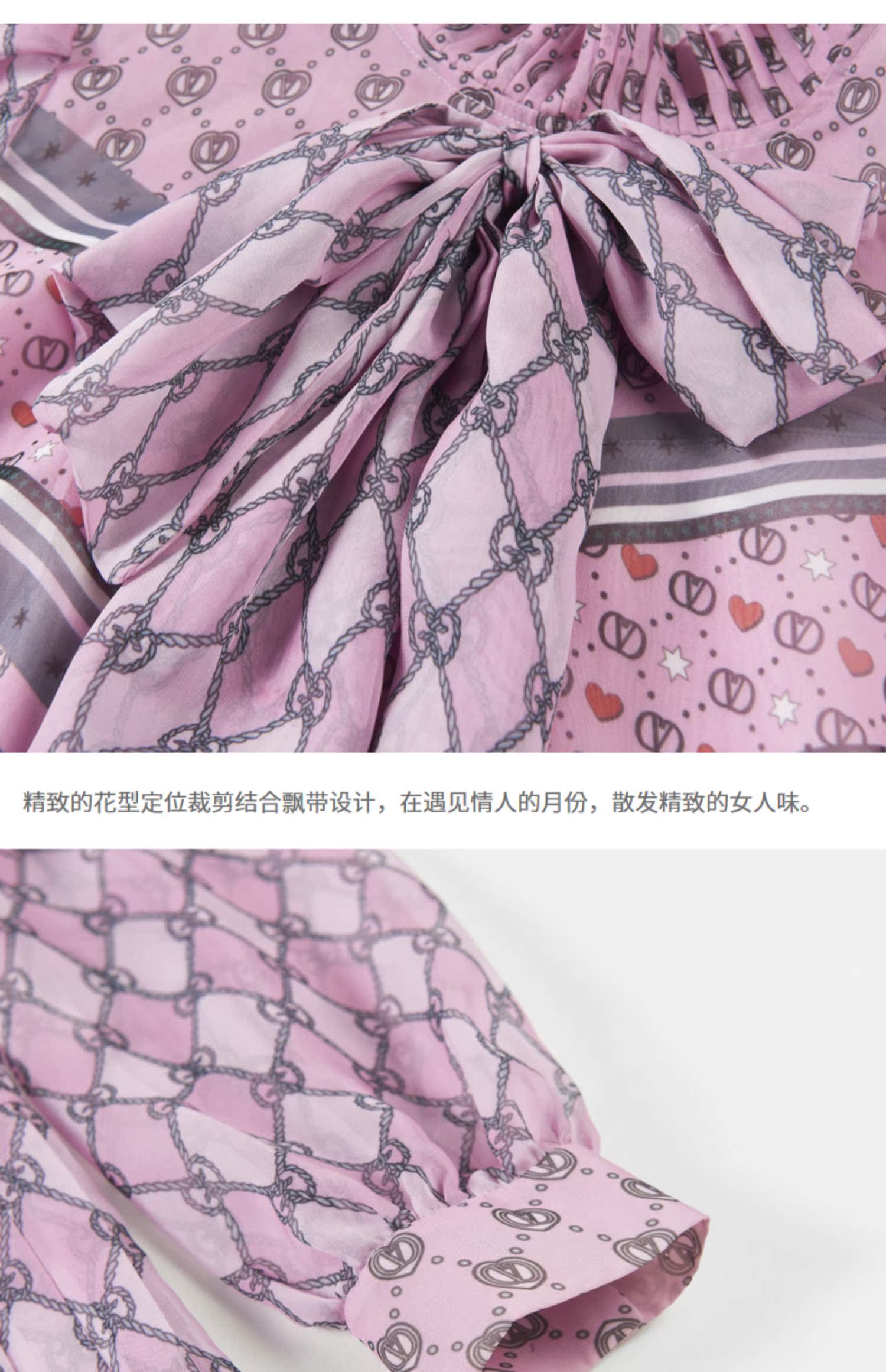 芭蒂娜桑蠶絲新款印花束腰連衣裙