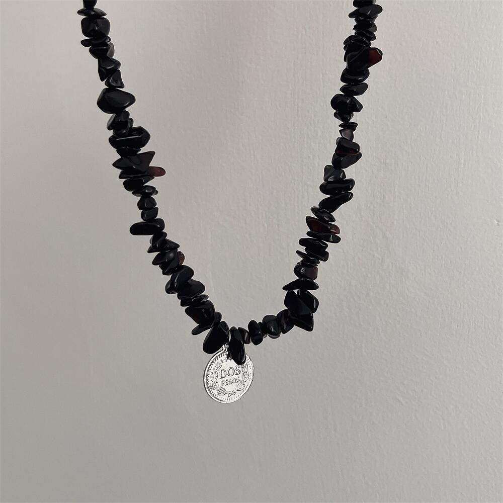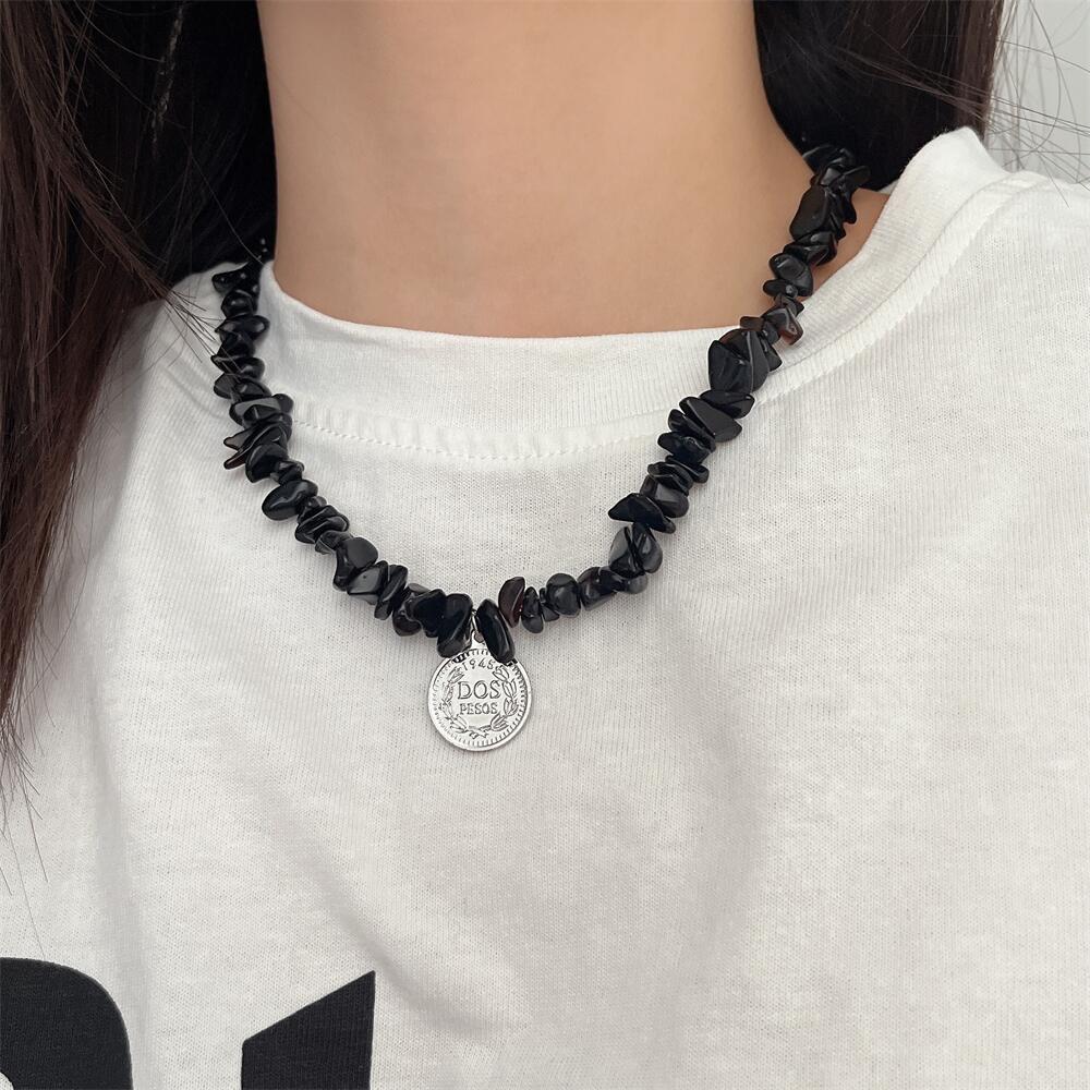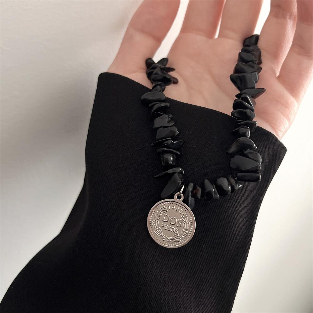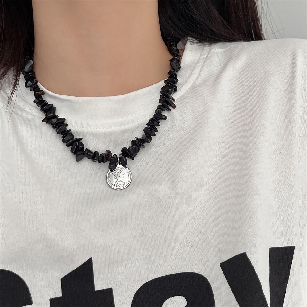 「碎石系列」國潮黑白天然石串珠拼接項鏈女小眾設計不掉色鎖骨鏈