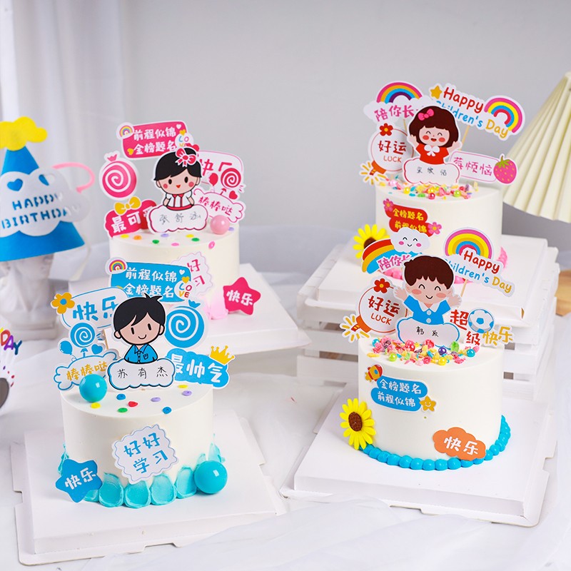 畢業季蛋糕裝飾金榜題名前程似錦插牌可愛卡通男女孩可寫名字插件