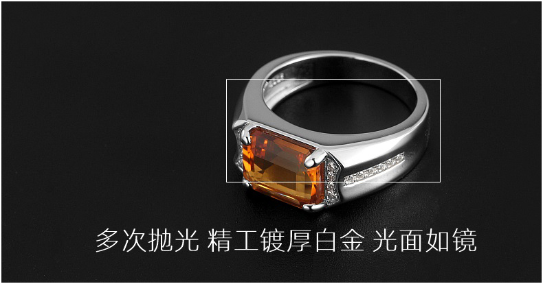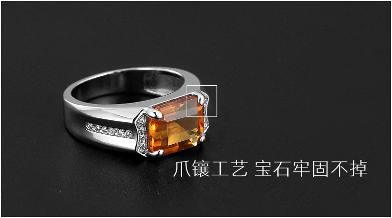 高級感設計天然黃水晶寶石戒指男純銀鍍金鑲嵌寶石輕奢小眾時尚