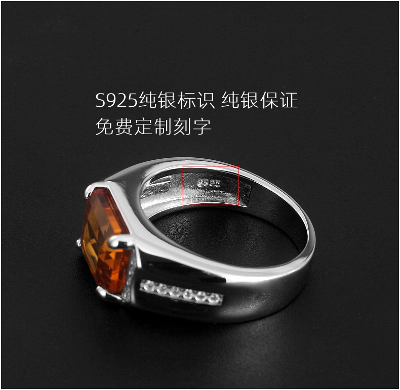天然黃水晶招財寶石戒指男款潮流高級感925純銀鍍金輕奢小眾設計