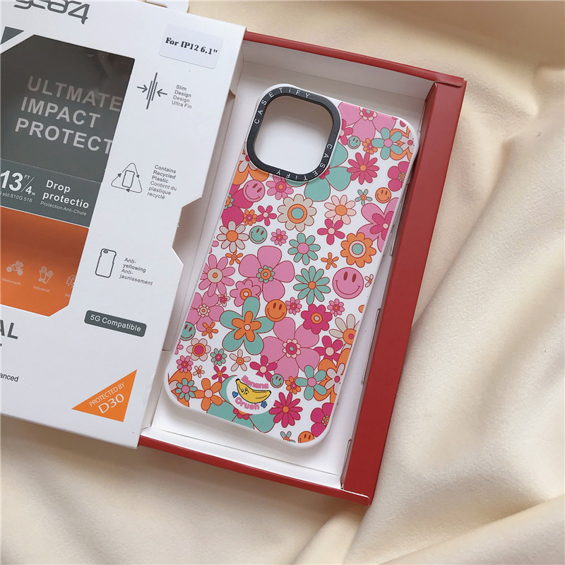 復古小眾花朵蘋果13彩虹卡通手機殼