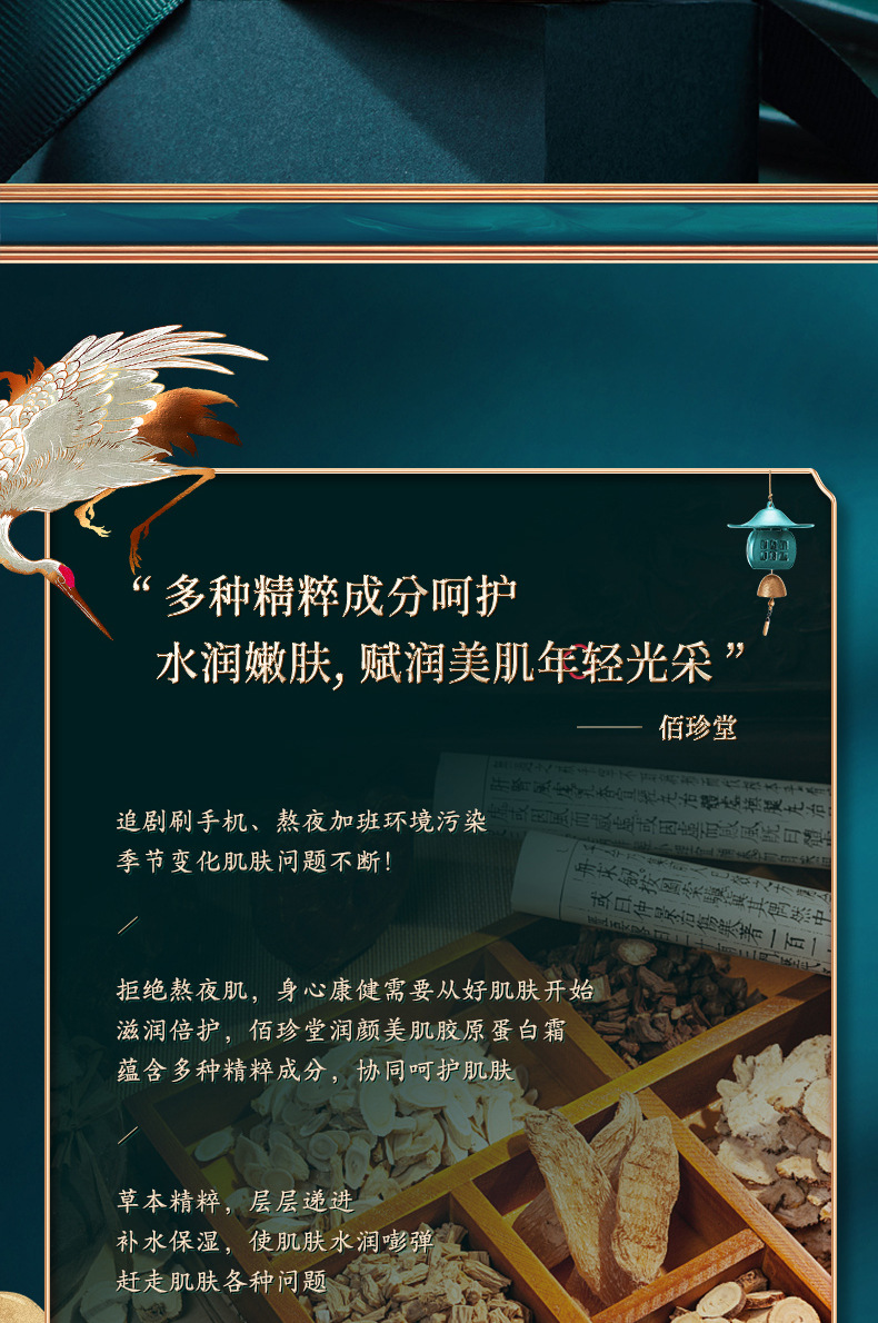 佰珍堂膠原蛋白珍珠霜面霜煥能修顏霜舒緩膚質補水保濕顆粒米丸子