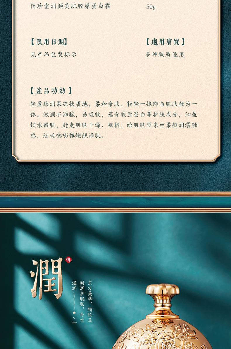 佰珍堂膠原蛋白霜面霜逆齡抗皺緊致抗初老填充面霜滋潤保濕水嫩