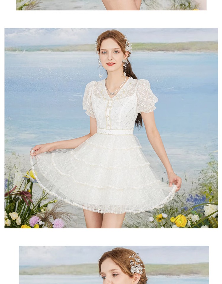 花兒開了2023夏季新款法式超仙網紗刺繡連衣裙女高腰修身公主裙子