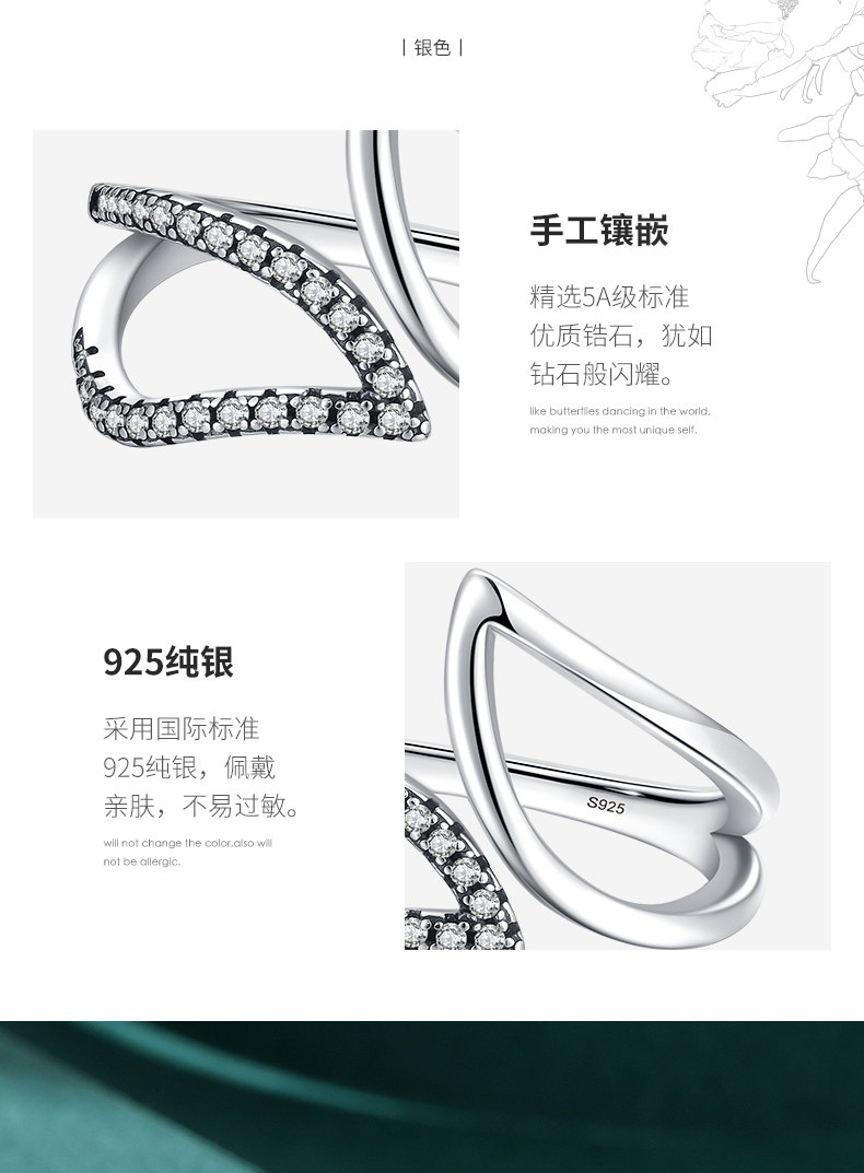 modian s925純銀微鑲幾何線條指環