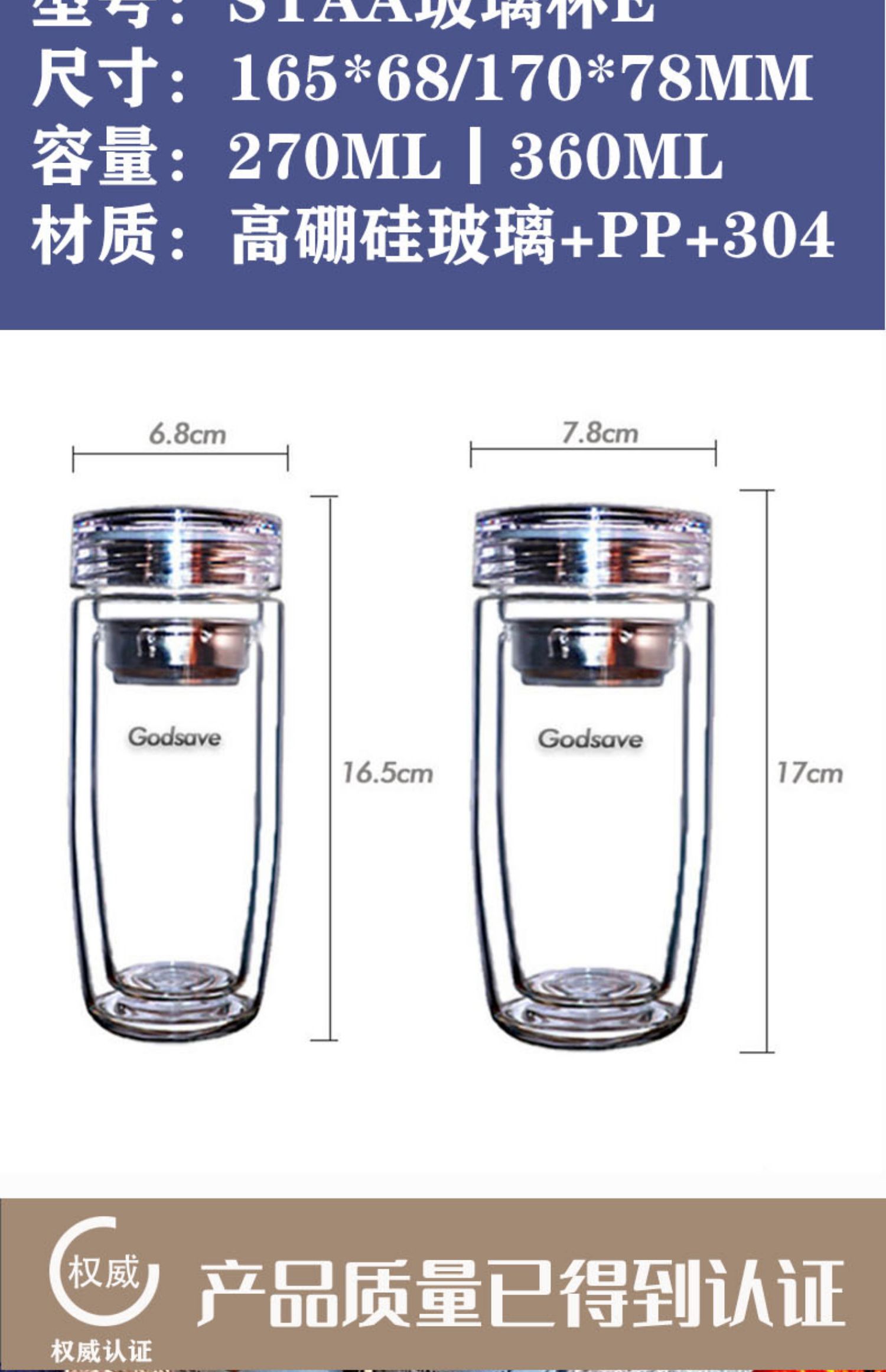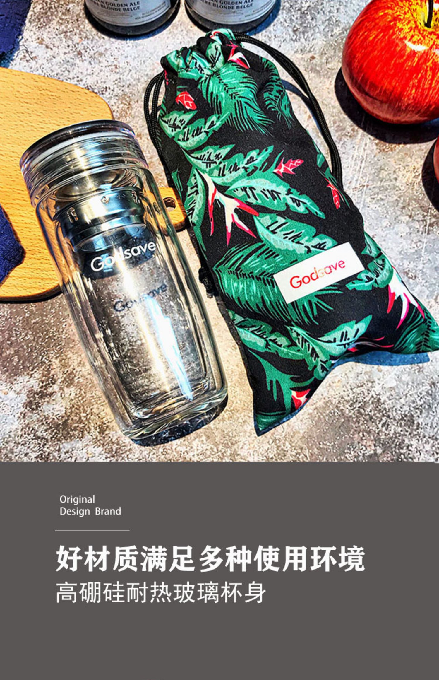 stanchion簡約玻璃水杯男士車載雙層隔熱便攜茶杯女生辦公室泡茶