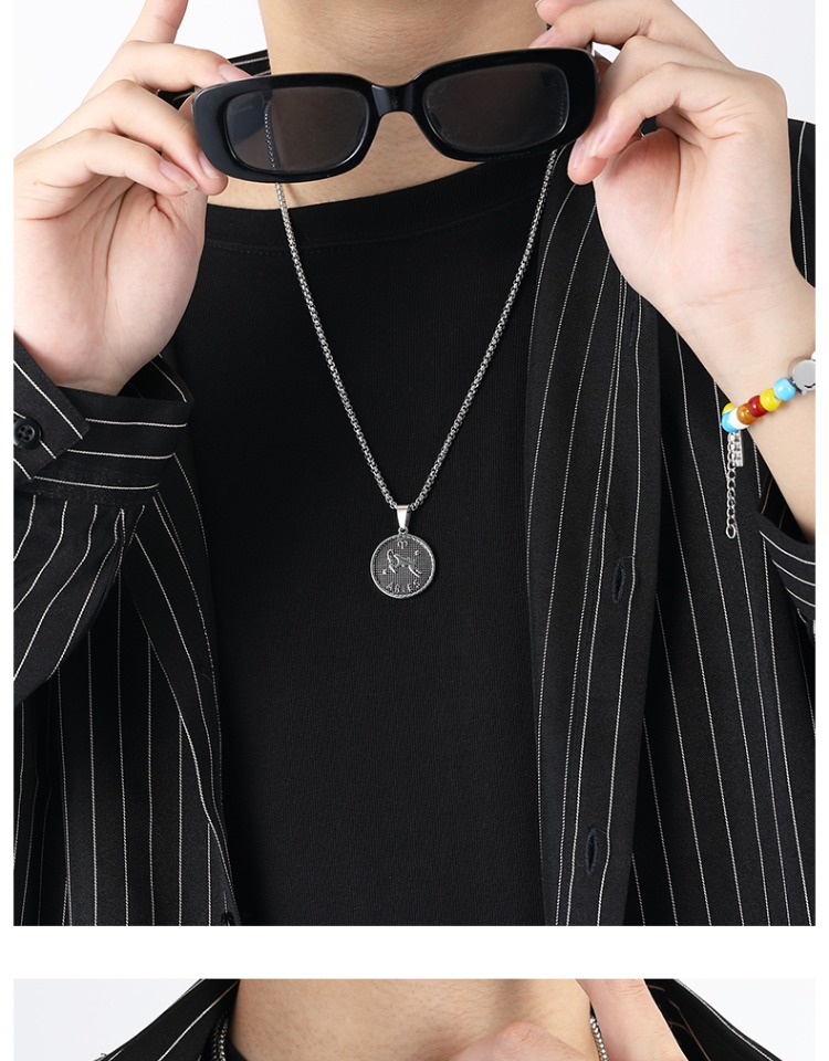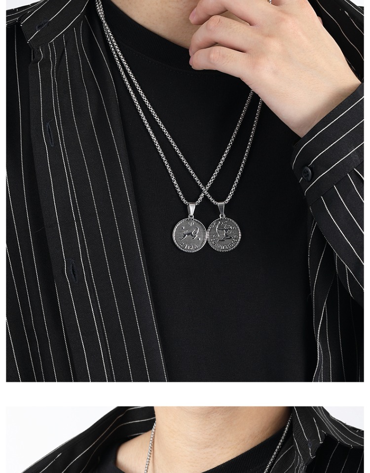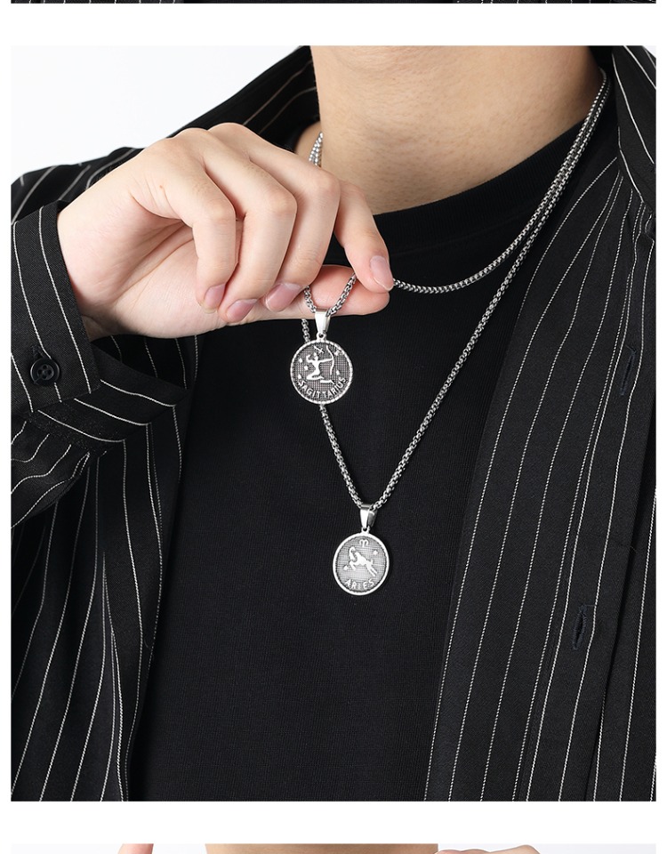 NYUK 十二星座項鏈 嘻哈潮牌鈦鋼情侶吊墜 小眾高級感配飾品男女