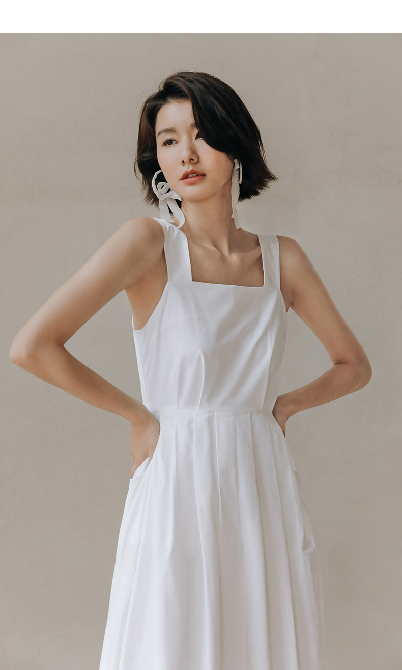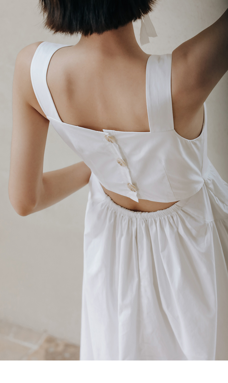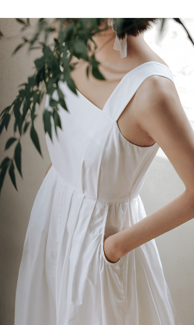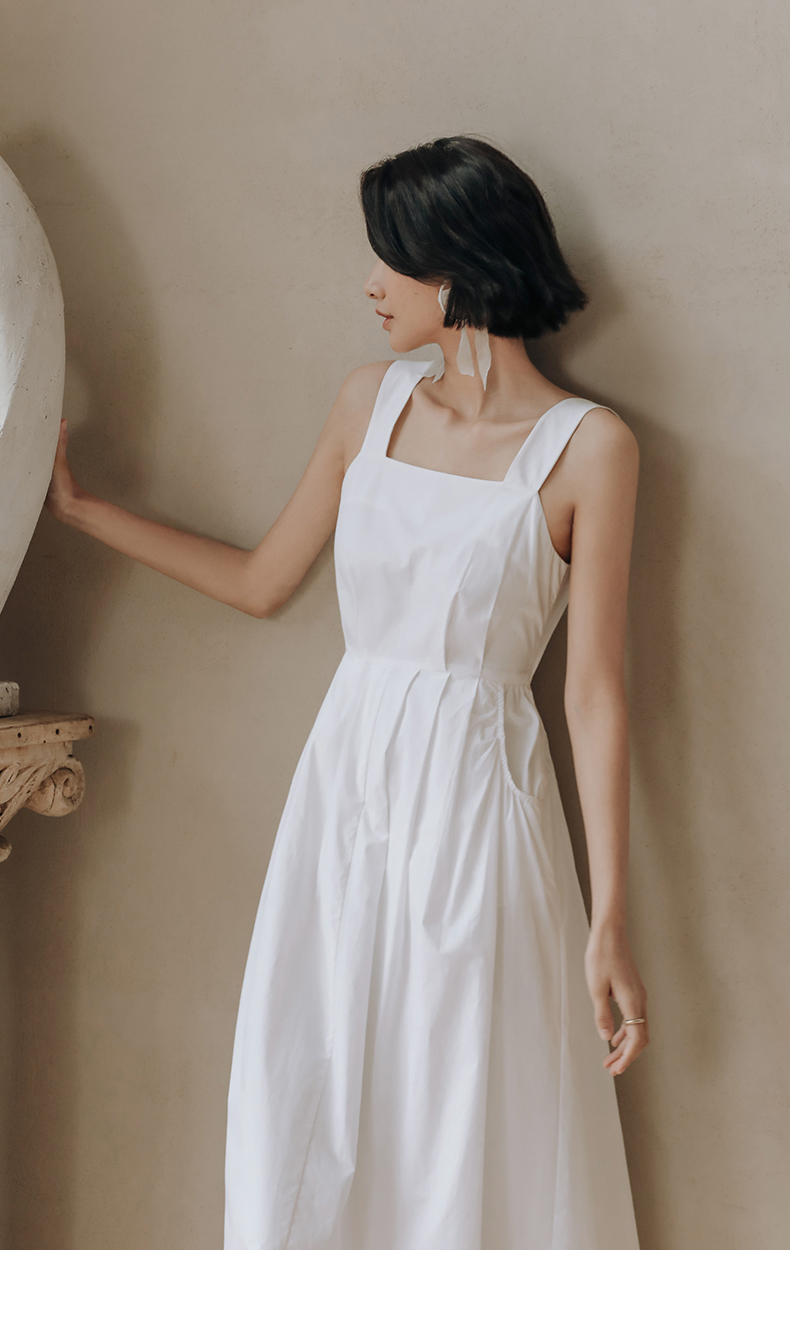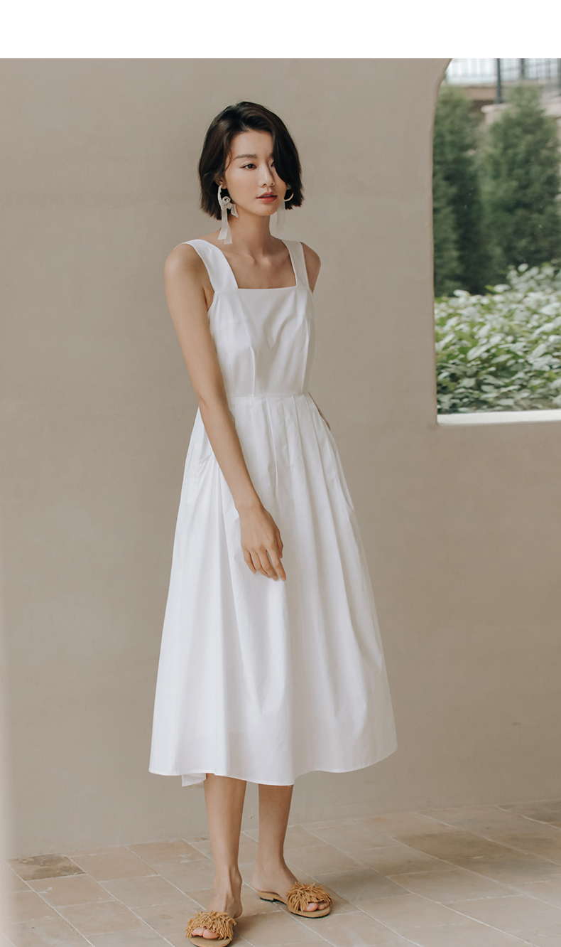 彌古法式小白裙高級感寬肩帶白色背心連衣裙女夏季純棉吊帶裙長裙