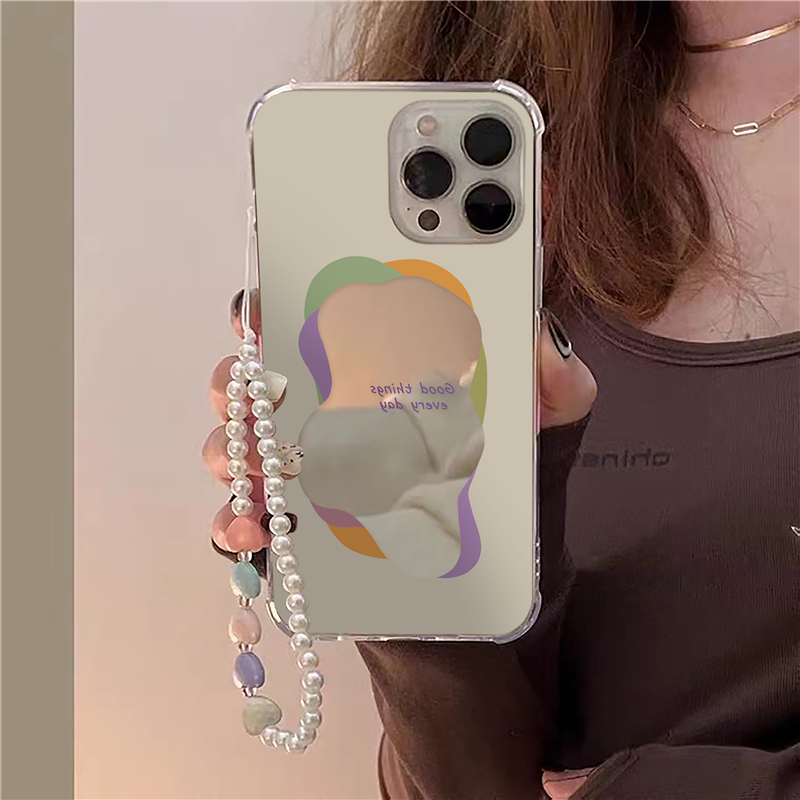 幾何補妝鏡面珍珠手鏈適用于iphone13promax蘋果11/12手機殼iphonex新款SE甜酷xr硅膠xs潮8plus防摔7 6保護殼