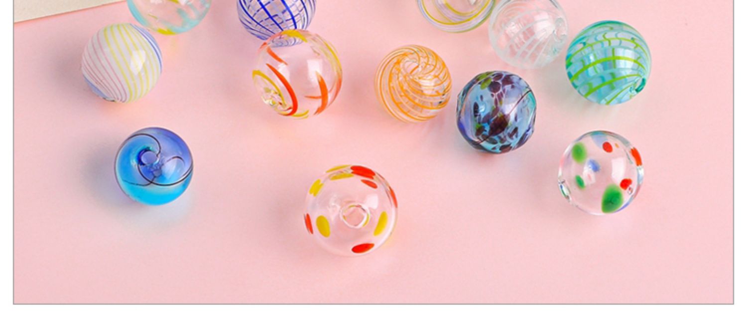 可愛手繪空心玻璃琉璃串珠diy手工材料 自制耳環手鏈項鏈飾品配件