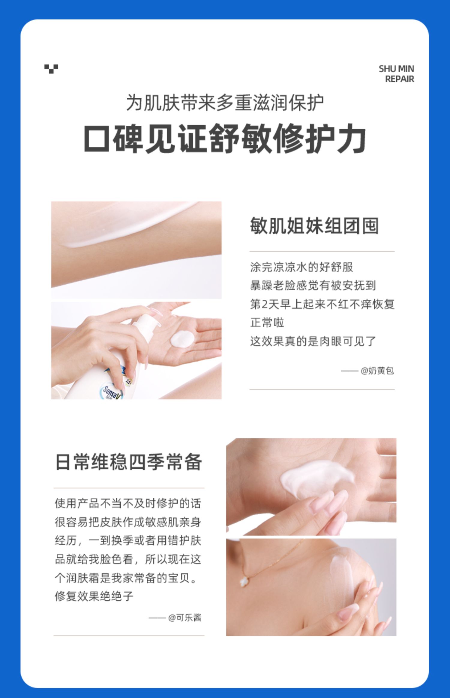 敏飛高保濕修護面霜舒緩褪紅癢滋潤敏感肌屏障修復泛紅積雪草夏季