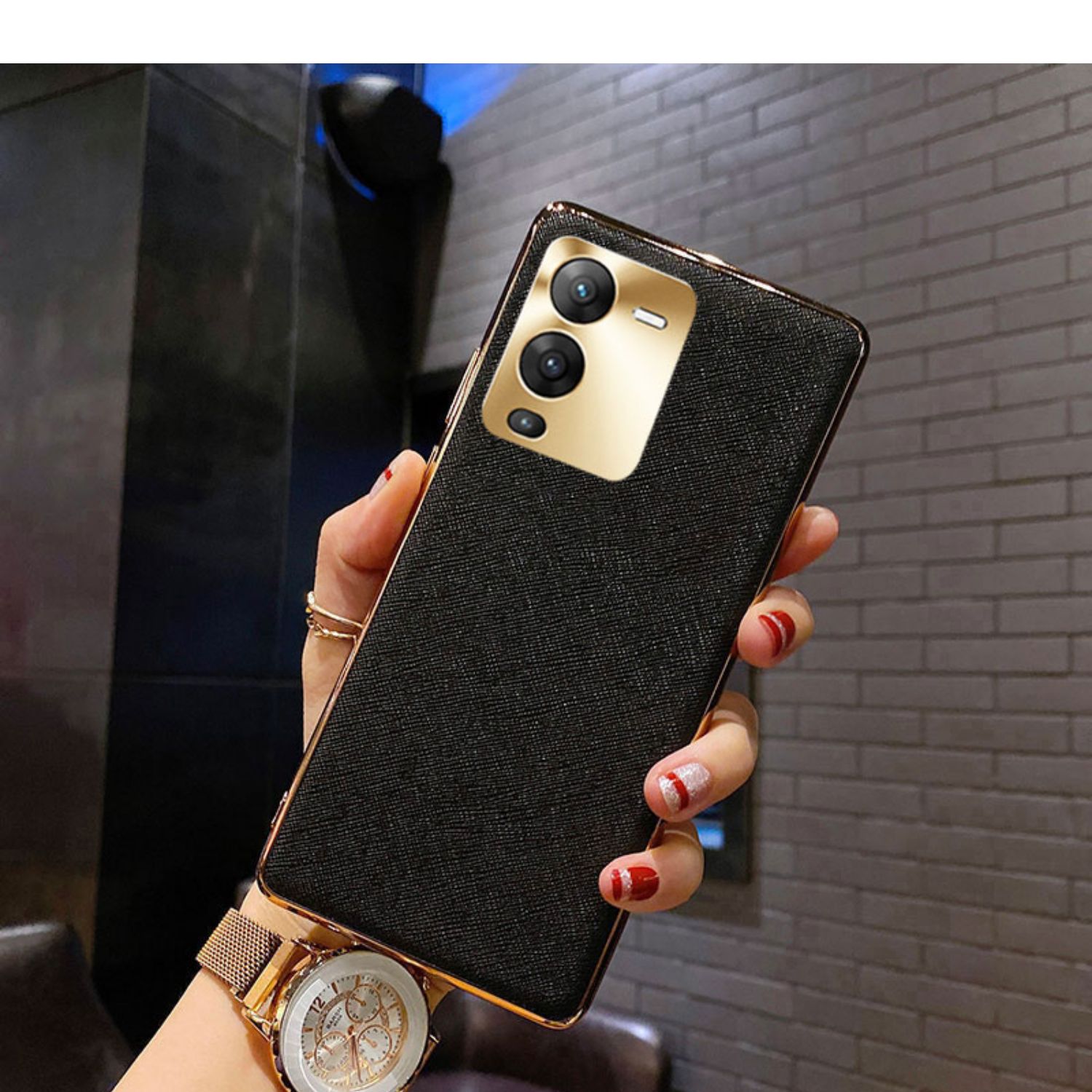適用vivos15Pro手機殼創意奢華皮紋防摔vivos15保護套高檔全包超薄新款真皮s15e電鍍簡約抖音男女個性潮皮套