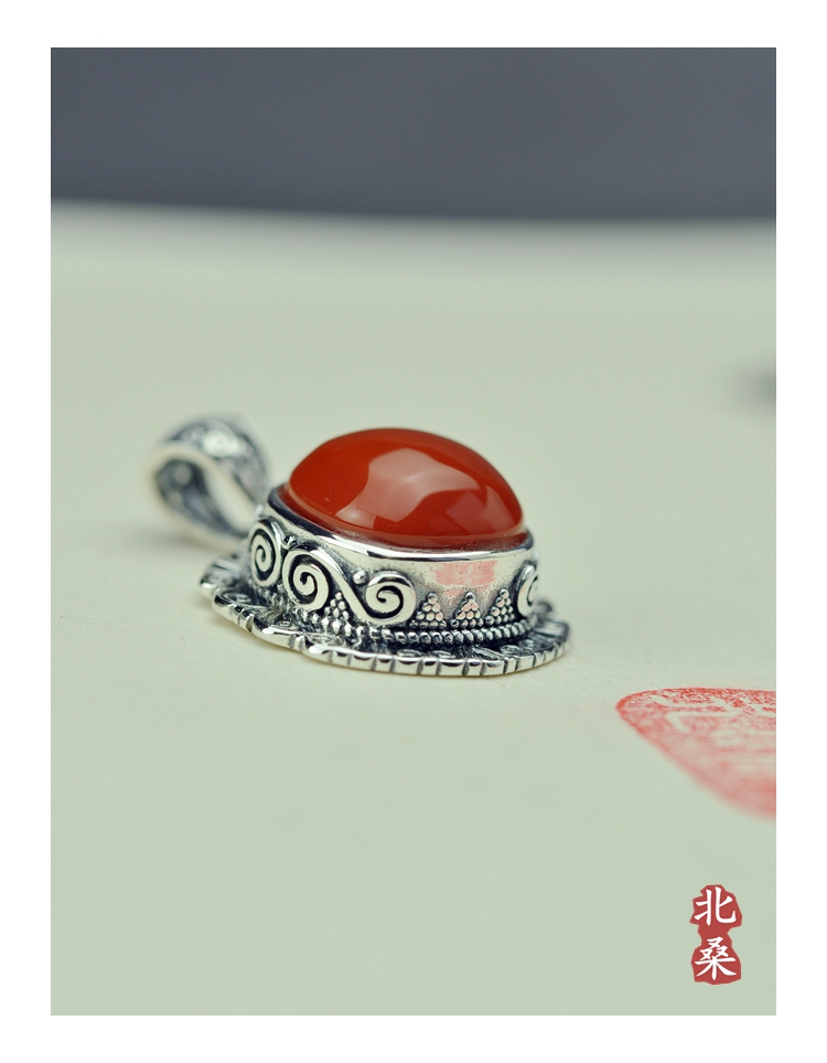 尼泊爾手工銀飾品925鑲嵌寶石項墜