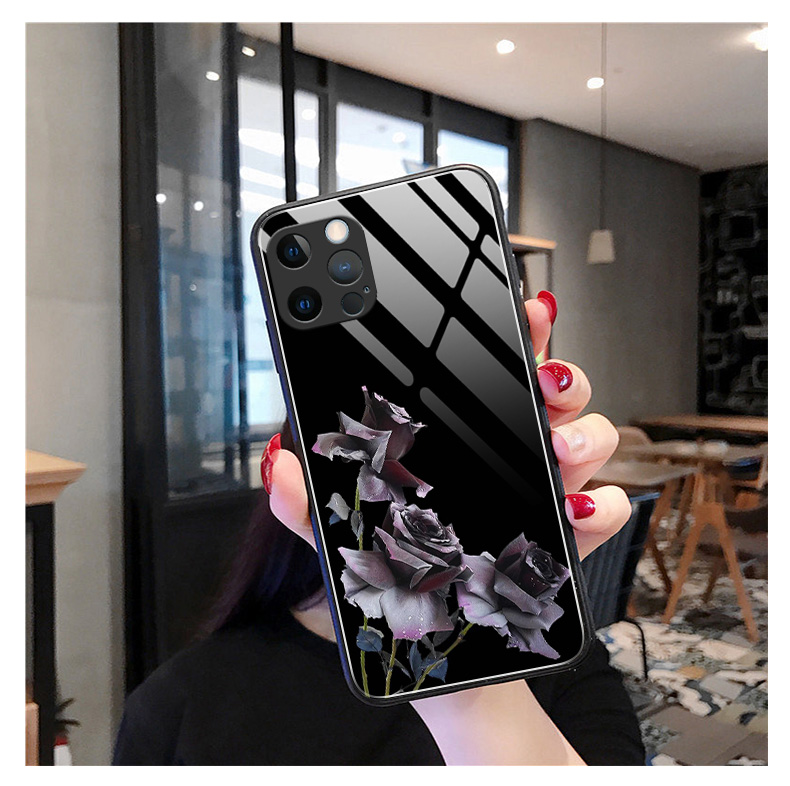 暗黑玫瑰蘋果13新款玻璃高級手機殼