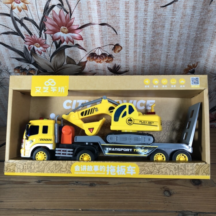 會講故事的挖掘機拖板車兒童仿真慣性聲光可拆運輸車工程車玩具車