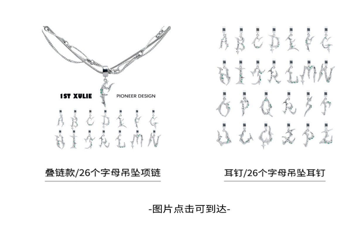 1STXULIE新款字母吊墜項鏈小眾設計感中性男女鎖骨鏈情侶送禮物
