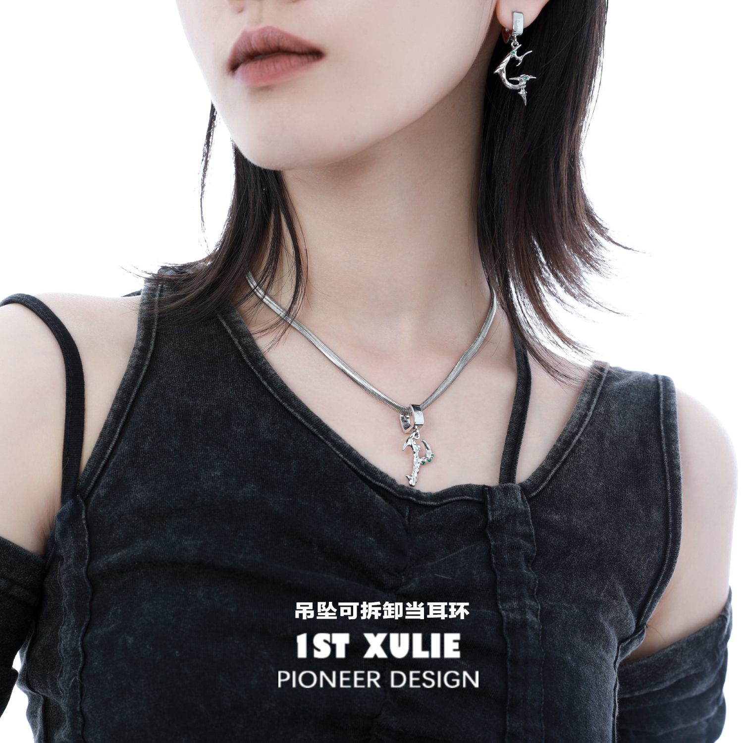1STXULIE黑白情侶項鏈多戴法原創小眾設計高級雙層鈦鋼鎖骨鏈男女