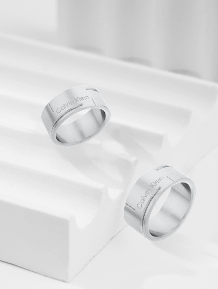 CalvinKlein官方正品CK型格系列潮流復古小方塊男士素圈戒指