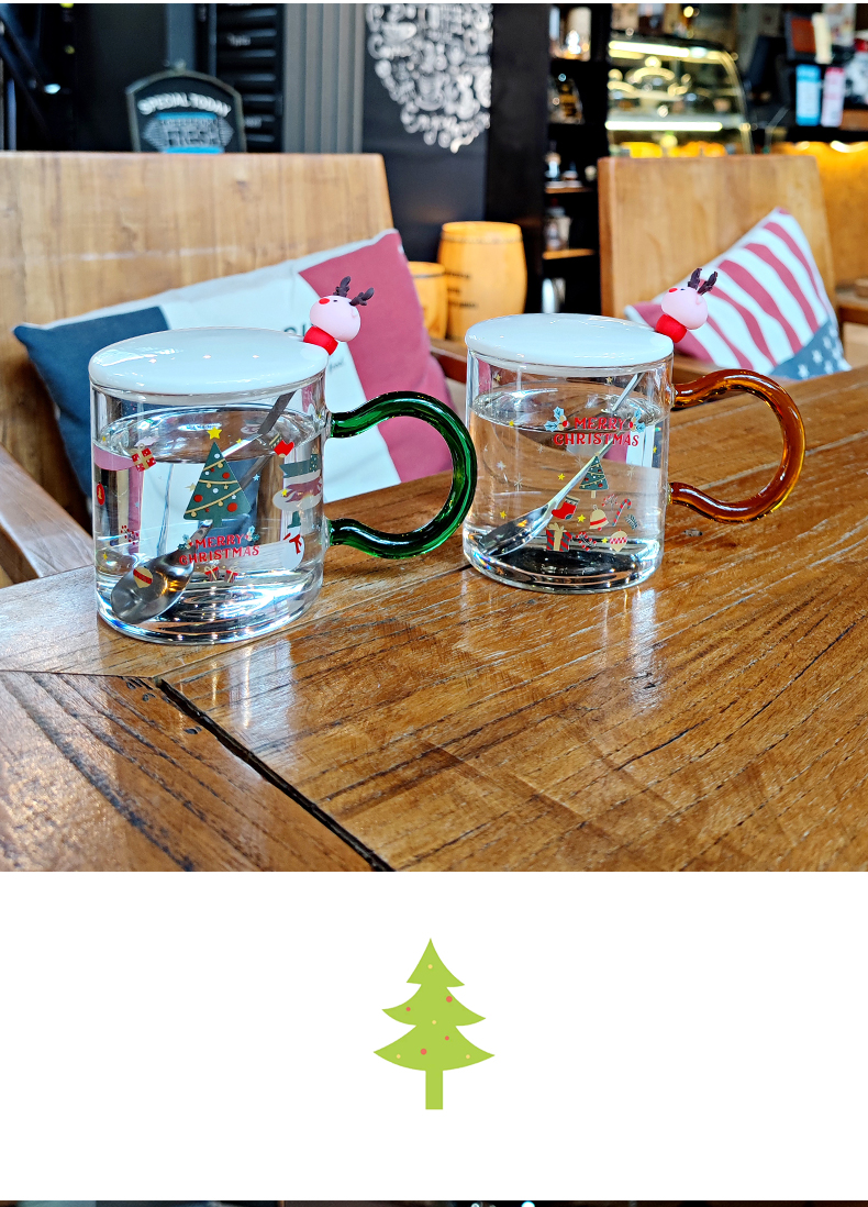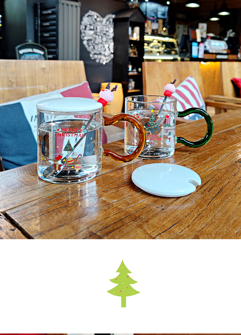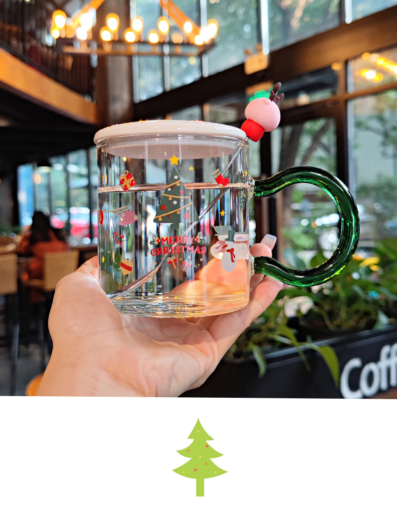 圣誕節玻璃杯女生創意杯子帶蓋勺大容量耐高溫高顏值辦公室喝水杯