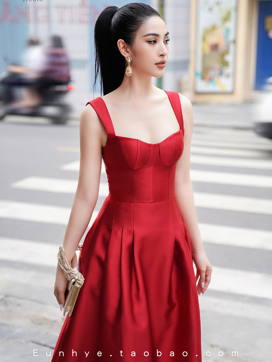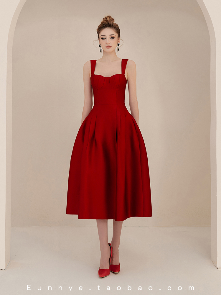 越南小眾品牌Tracy2022夏季新款吊帶氣質小V領結婚敬酒禮服高腰