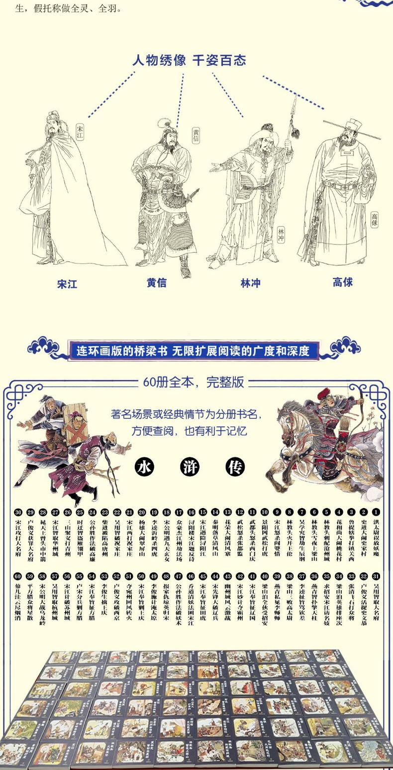 水滸傳典藏版全套60冊升級版 中國古典四大名著連環畫漫畫故事小人書老版懷舊兒童繪本3-6-8-12周歲小學生一二三四年級課外書籍