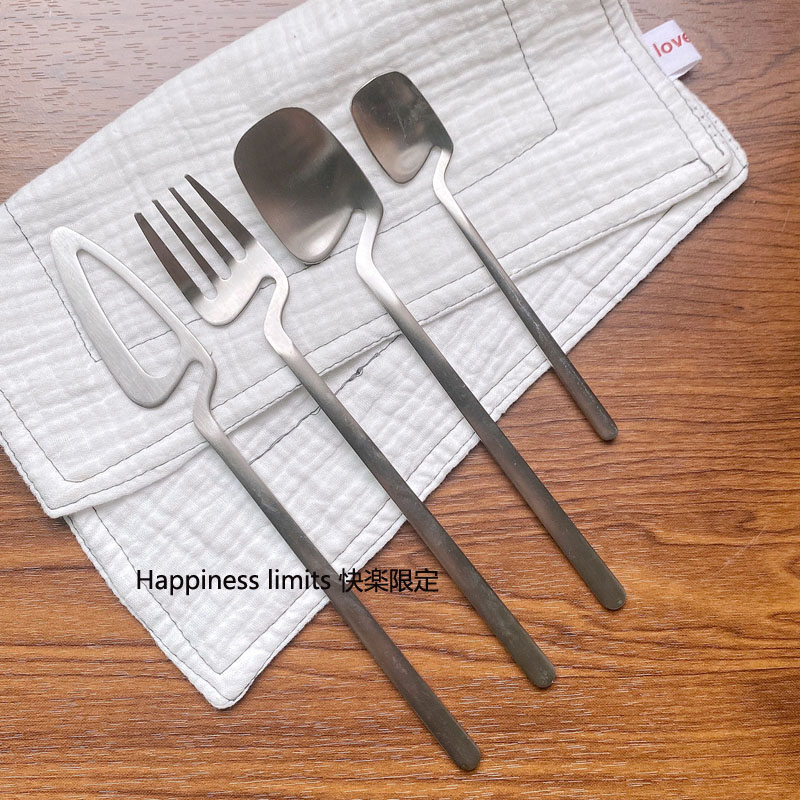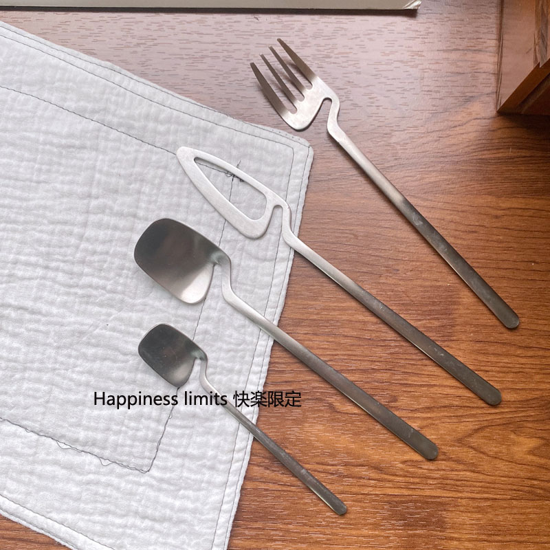 韓式ins風304不銹鋼創意高顏值小眾設計掛邊刀叉勺餐具商用甜品勺