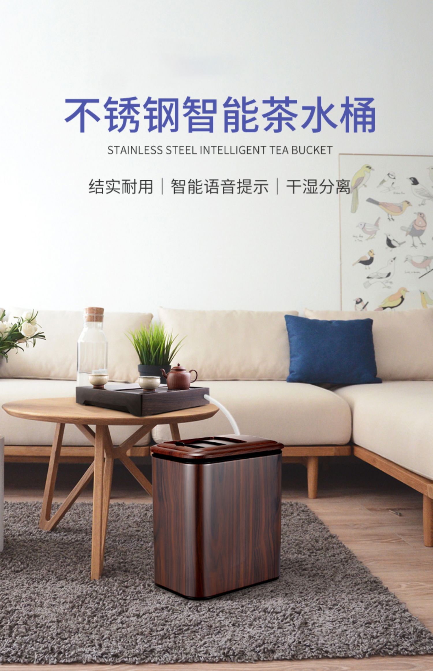 高端中式茶水桶復古智能輕奢茶渣桶茶桶干濕分離垃圾桶茶室廢水桶