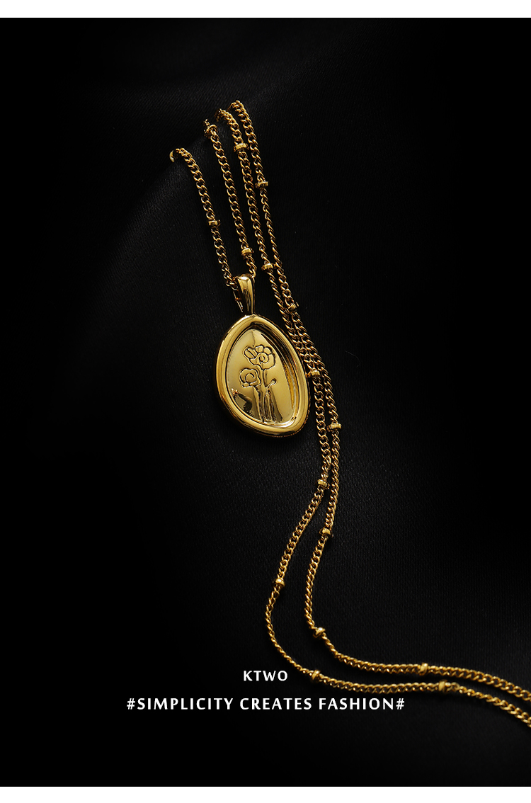 ins圓牌吊墜秋冬新款小眾鍍毛衣鏈