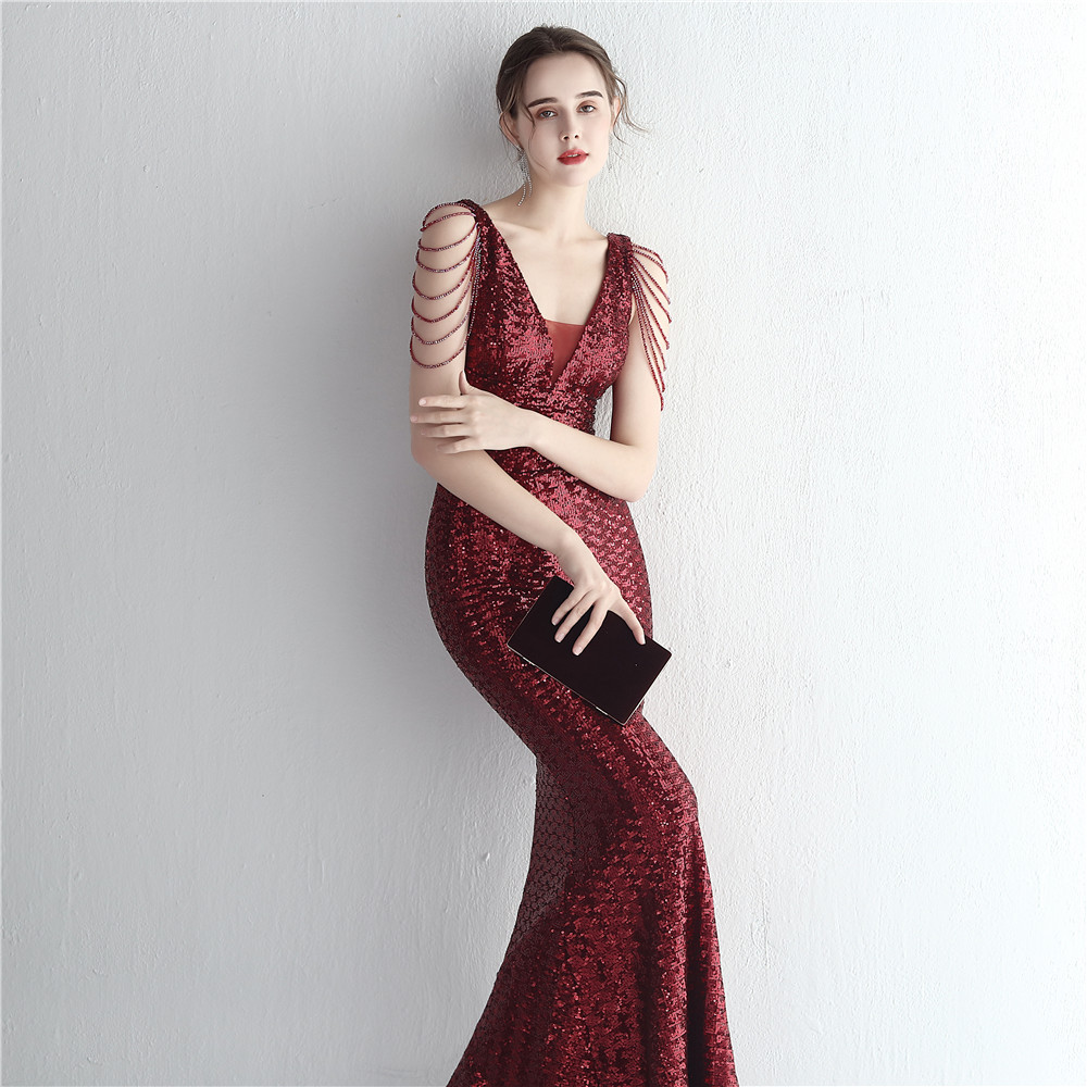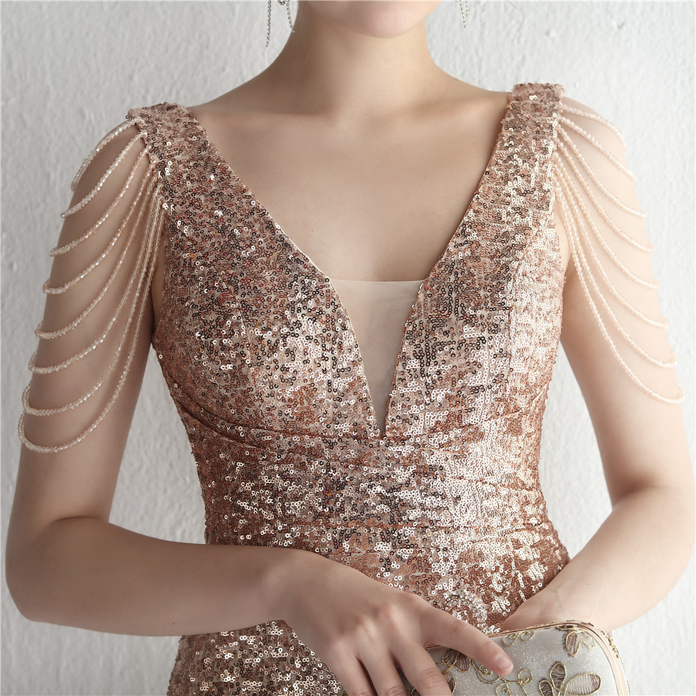 高端亮片抹胸連衣裙女高貴優雅名媛宴會輕奢氣質女神范驚艷晚禮服